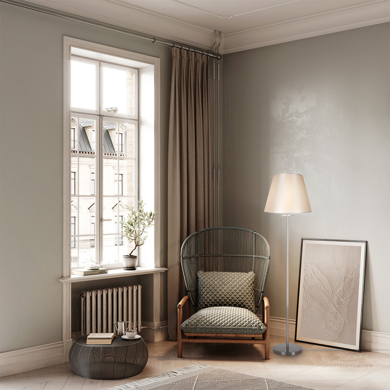 Металлическая арматура в двух оттенках: латунь и никель. Классическая форма плафона в виде свечи. Торшер и настольная лампа имеют тканевые абажуры. Белые – для арматуры цвета никель, оттенка кремовый шампань – для латунной. Декор – прозрачные хрустальные подвесы каплевидной формы. Торшер с цоколем Е27, лампа, бра и люстры – Е14.