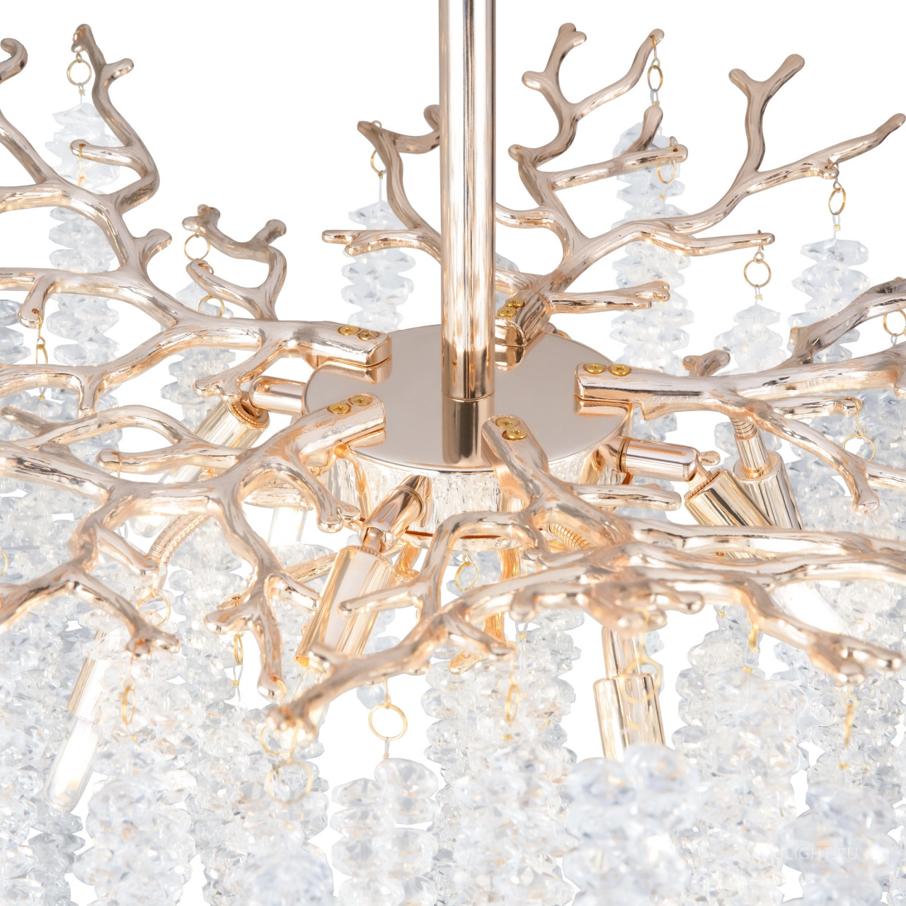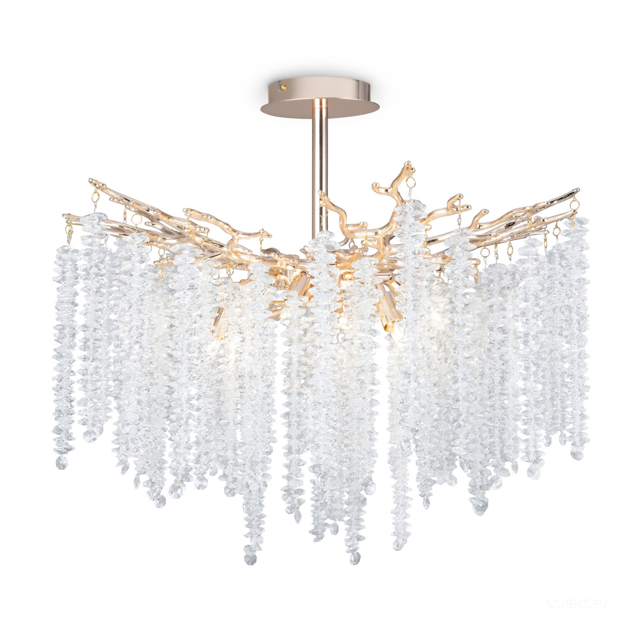 Материалы арматуры —металл, цвет — золото. Хрустальные декоративные элементы напоминают капельки - создают глубокие переливы света. Дизайн в трендовой растительной тематике. Источник света — лампа с цоколем G9 и с поворотной функцией.