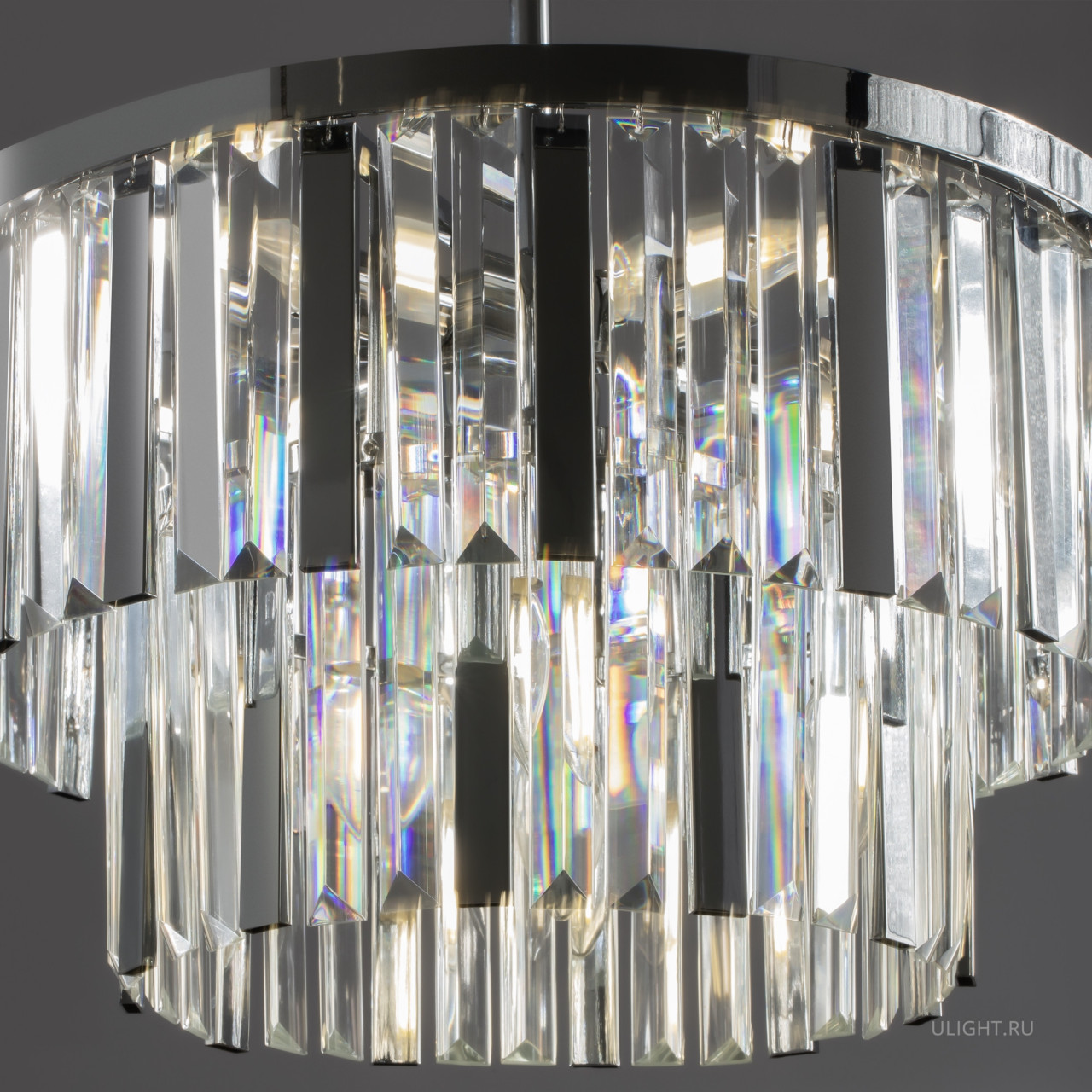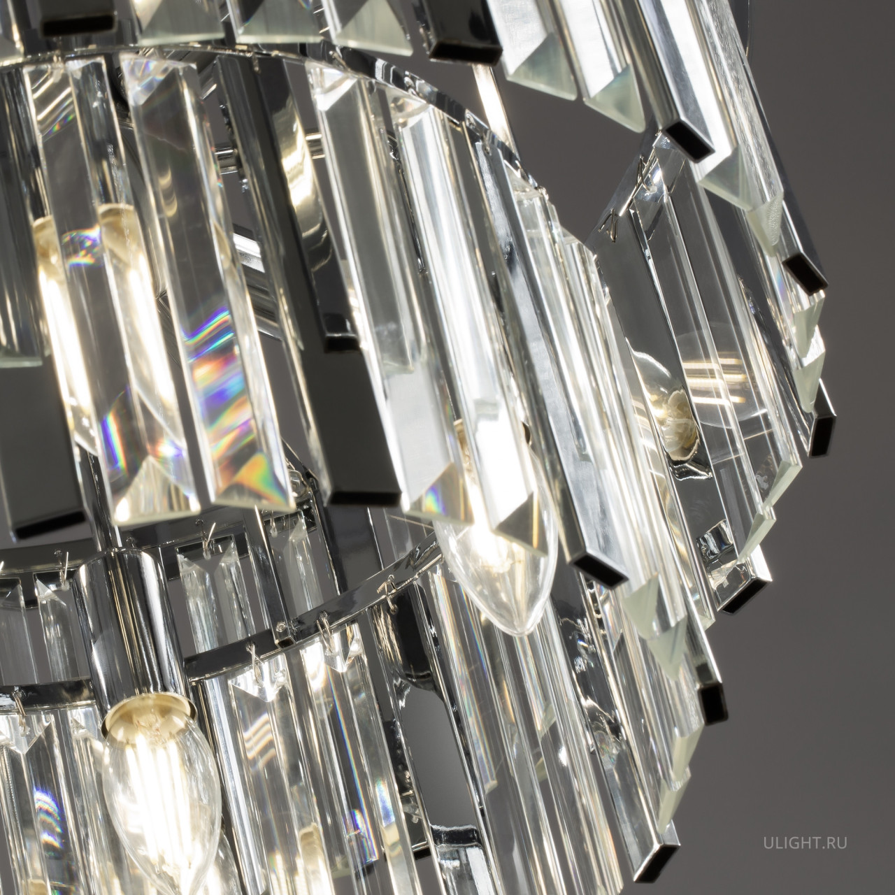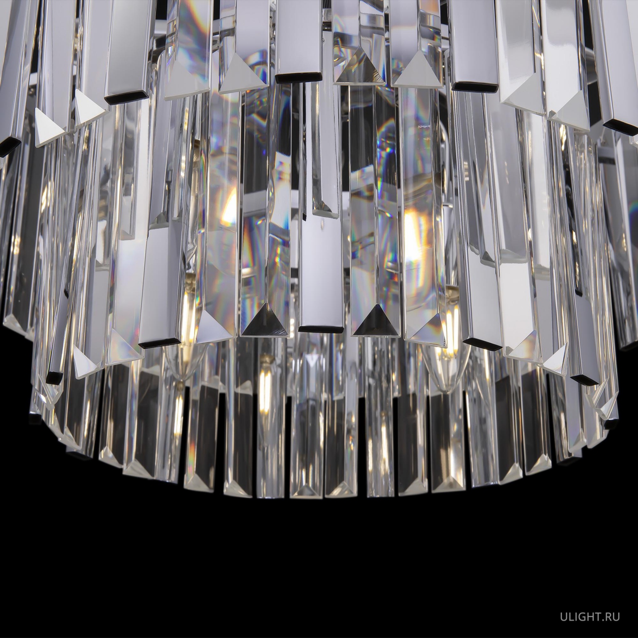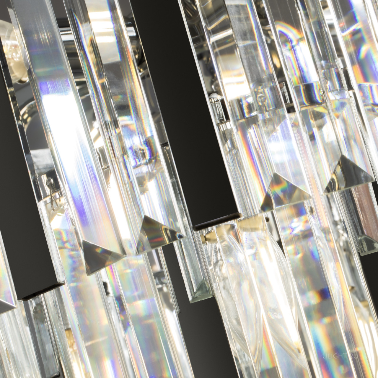 Получить расчет проектаАрматура из металла. Оттенки – хром, золото. Многоярусный стеклянный декор прямоугольной вытянутой формы. В качестве источников света используются лампы с цоколем Е14.