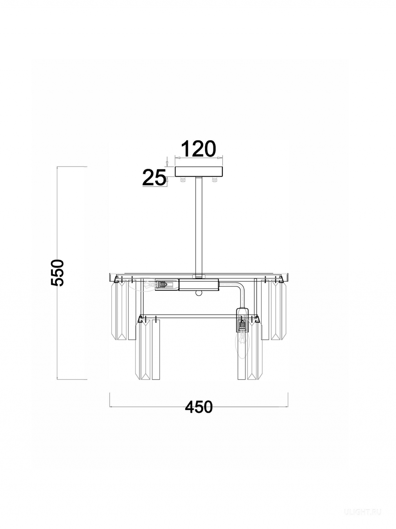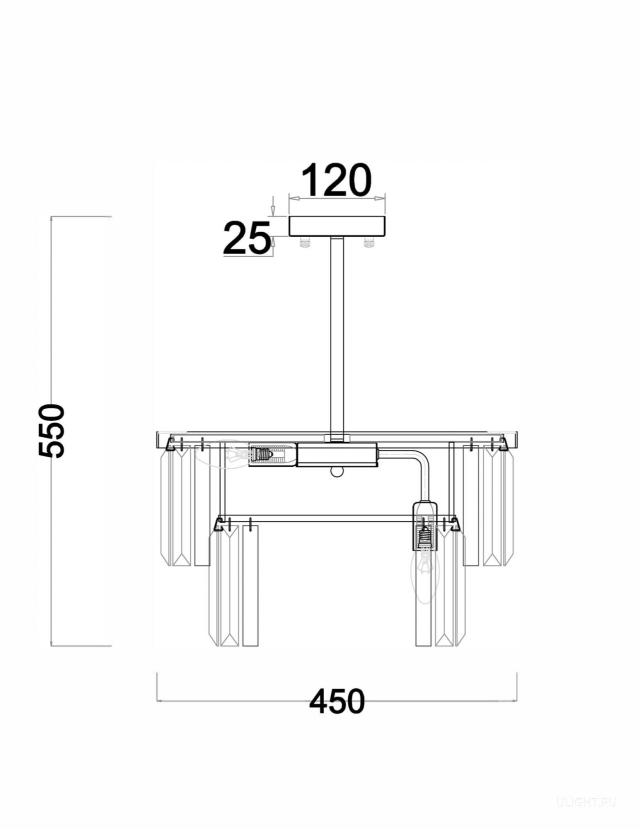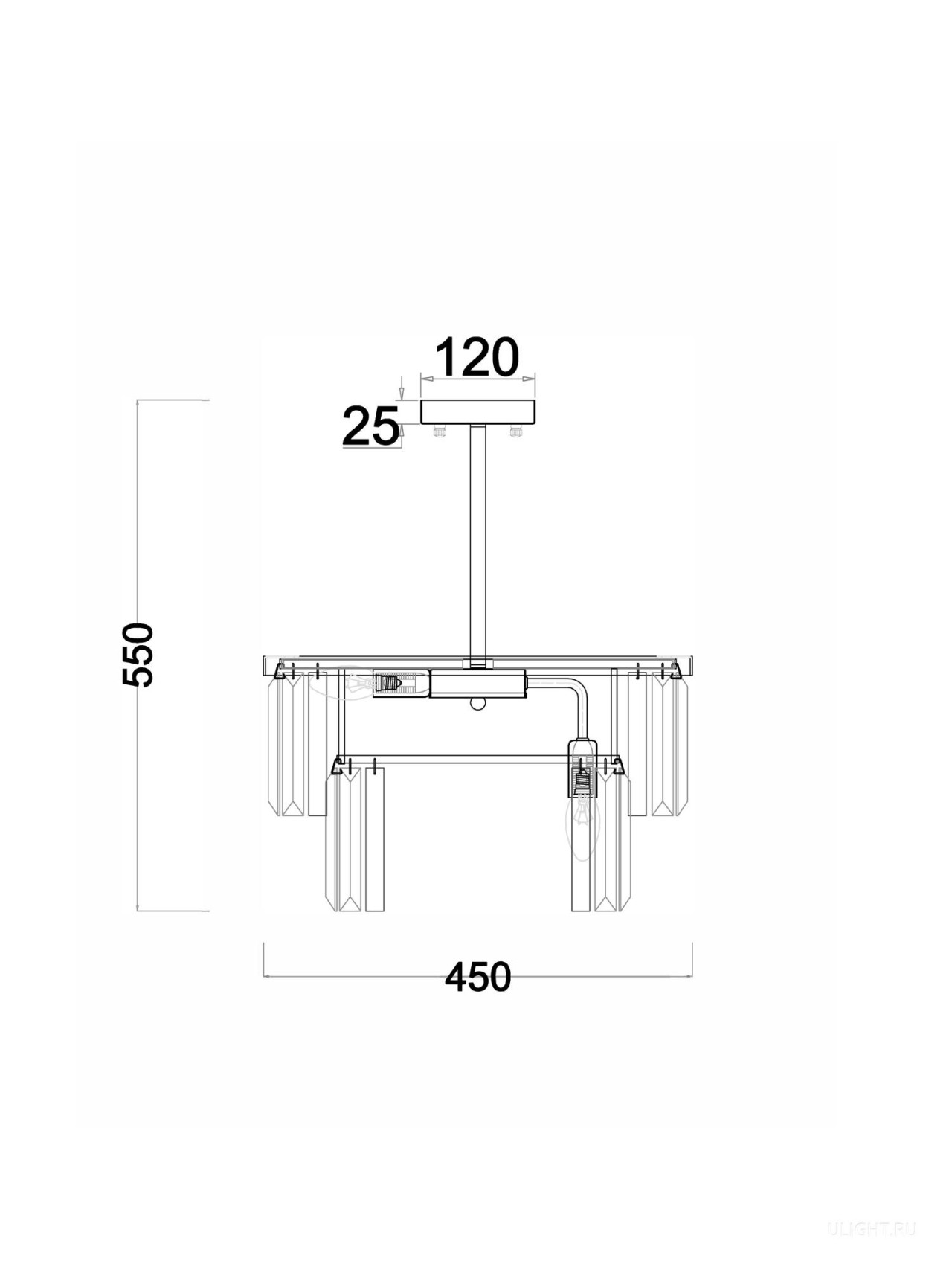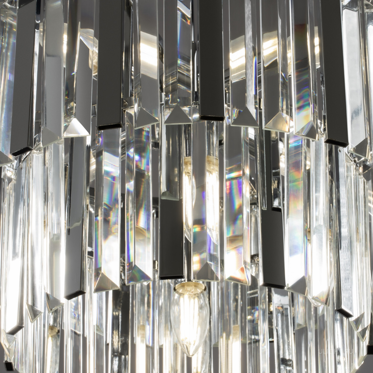 Получить расчет проектаАрматура из металла. Оттенки – хром, золото. Многоярусный стеклянный декор прямоугольной вытянутой формы. В качестве источников света используются лампы с цоколем Е14.
