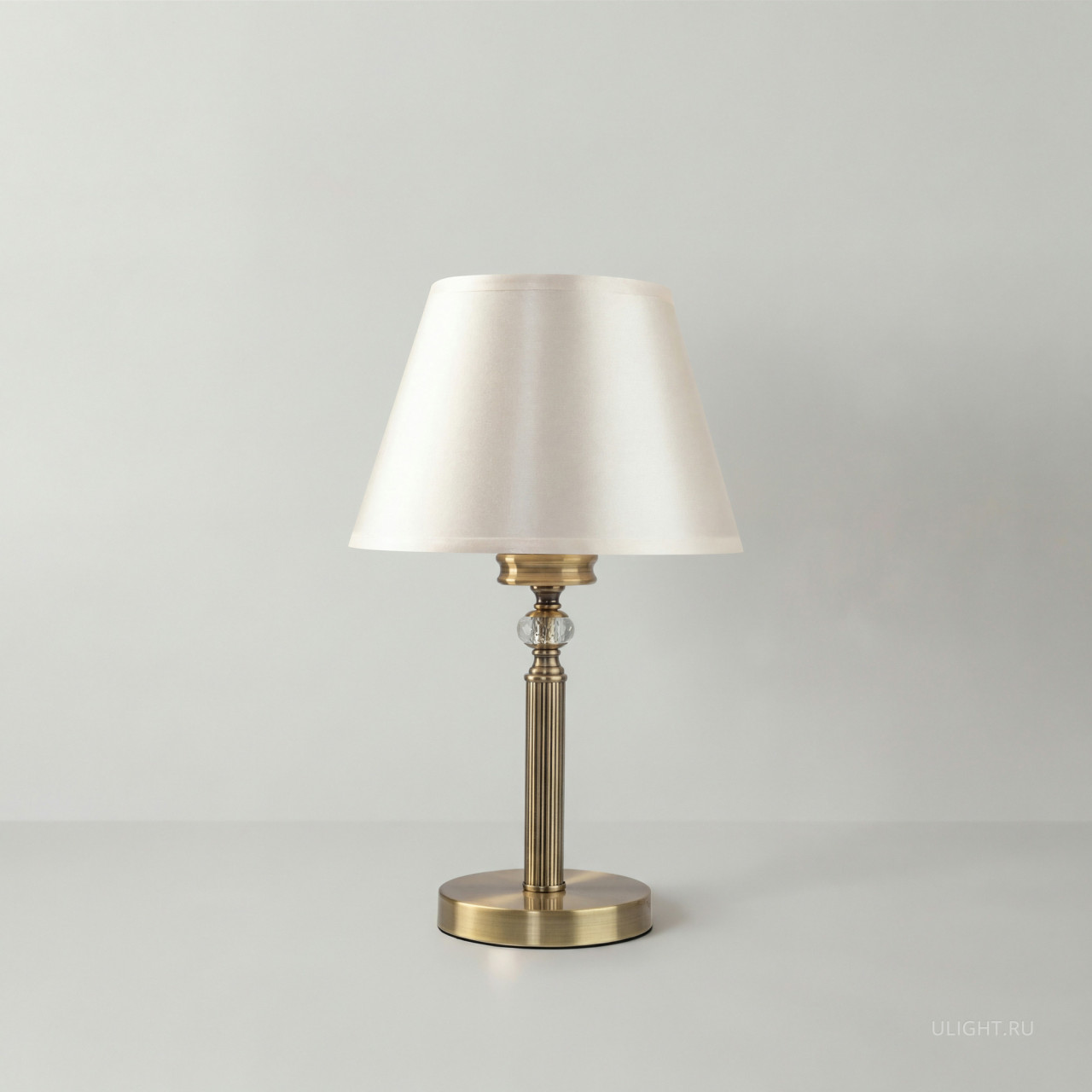 Элегантные светильники в классическом стиле. Металлическая арматура светильников Alessandra цвета латуни сочетается с кремовым цветом абажуров из ткани. Абажуры окантованы лентой в тон. Дизайн арматуры дополнен декоративным элементом из стекла.