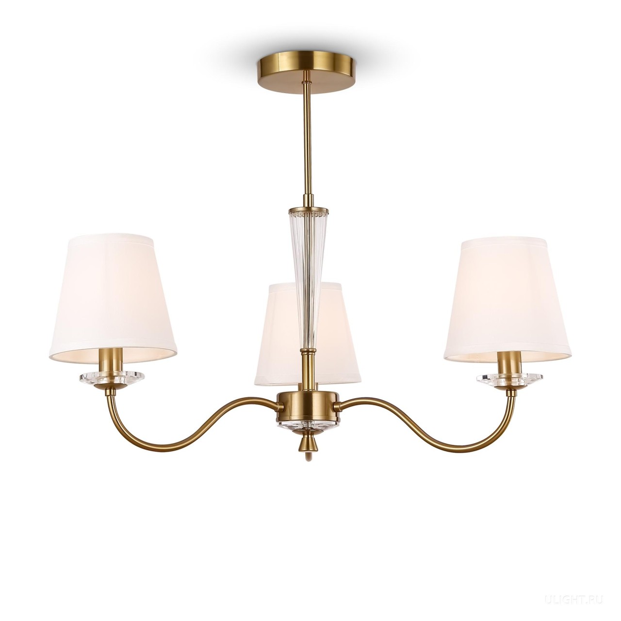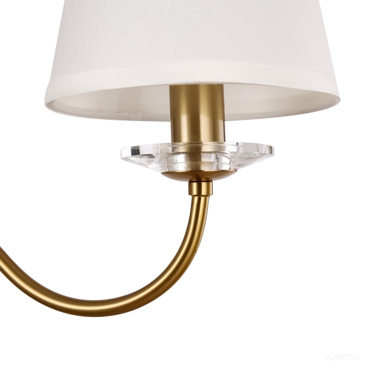 Получить расчет проектаМеталлическая арматура в двух оттенках на выбор: латунь и никель. Абажуры – текстиль белого цвета. Декоративные элементы из прозрачного стекла. Источник света – лампа с цоколем E14.