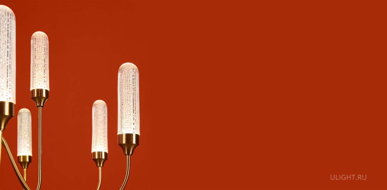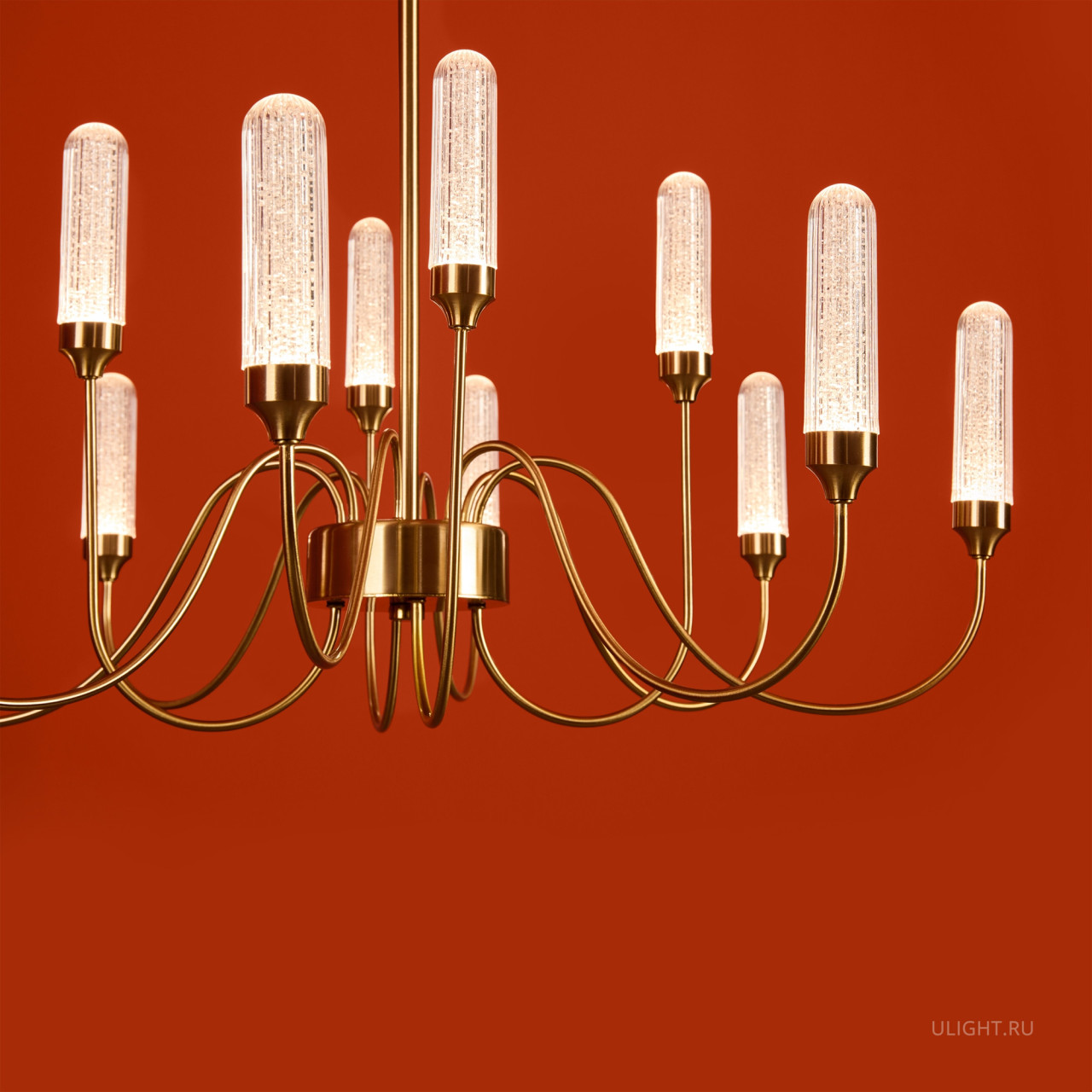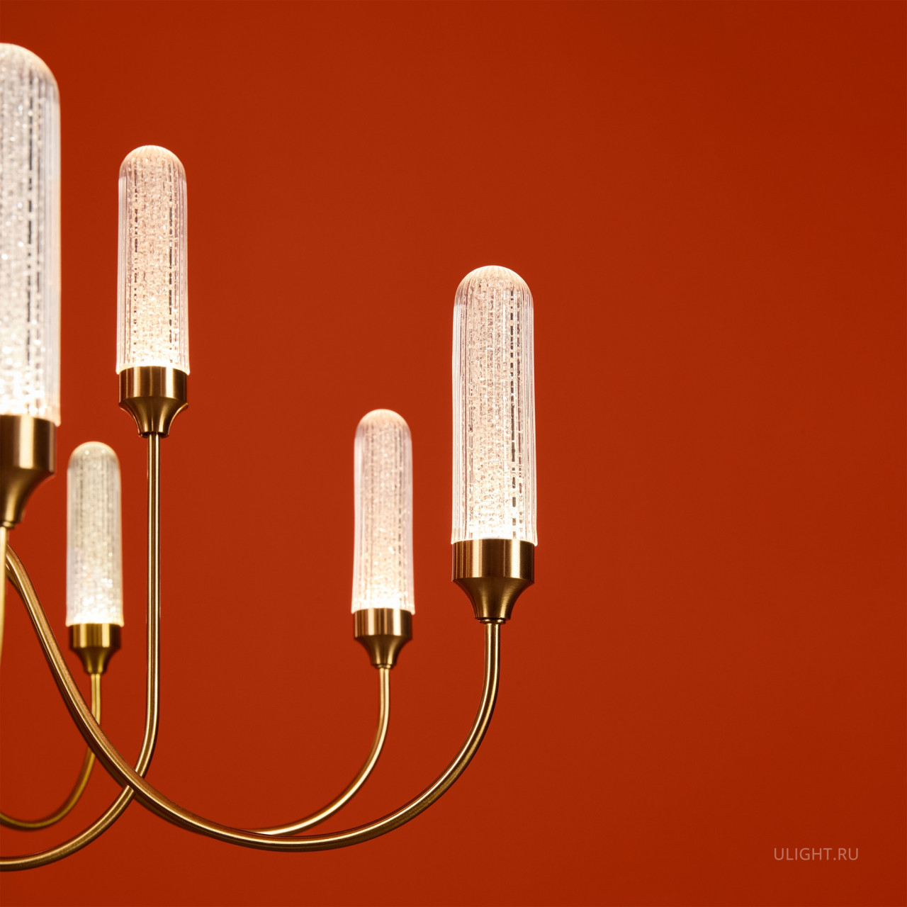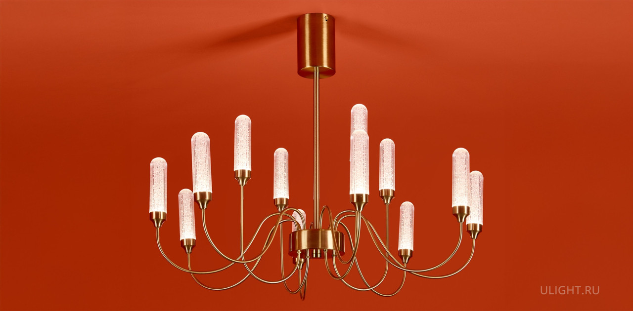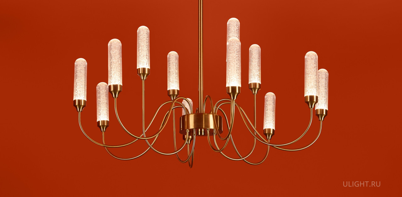 Арматура - металл в цвете латунь и никель. Основной акцент в дизайне люстр Alias сделан на акриловые плафоны, эффект пузырьков. Встроенный LED модуль 2700K. 2 дизайна подвесных светильников.