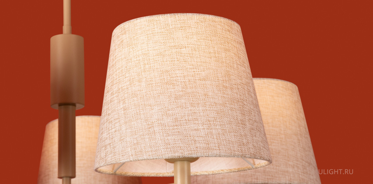 Металлическая арматура в цвете RAL 1019. Тканевые абажуры в светлых оттенках. Лампа E27 (не в комплекте).Бра с двумя источниками освещения Led и цоколь E27. Разнообразие типов светильников в серии.