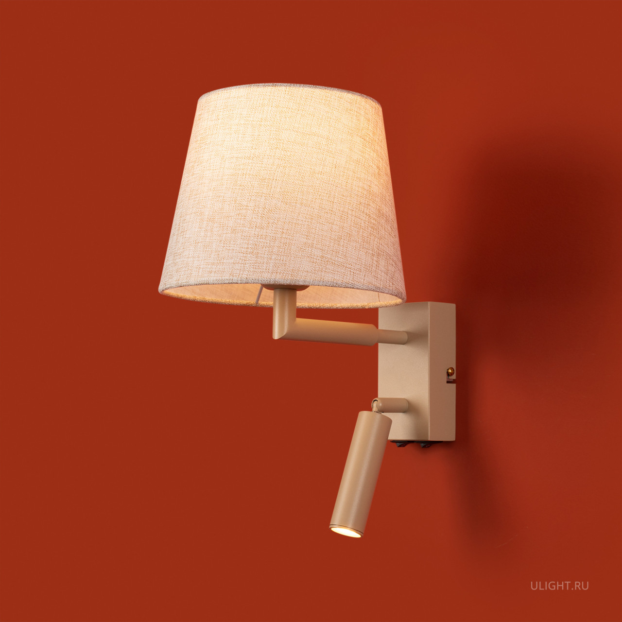 Металлическая арматура в цвете RAL 1019. Тканевые абажуры в светлых оттенках. Лампа E27 (не в комплекте).Бра с двумя источниками освещения Led и цоколь E27. Разнообразие типов светильников в серии.