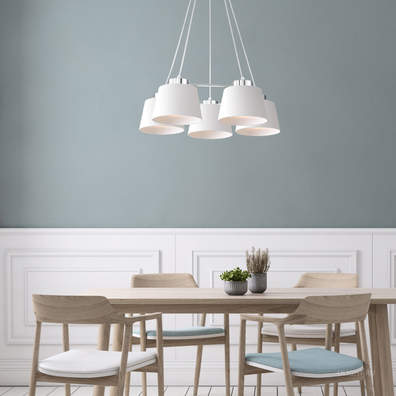 Светильники серии Barbara словно парят над помещением. Этот эффект достигнут благодаря светлому цветы арматуры и плафонов. Арматура и плафоны сделаны из металла. Цвет арматуры - хром, а плафоны окрашены порошковым способом в белый цвет.