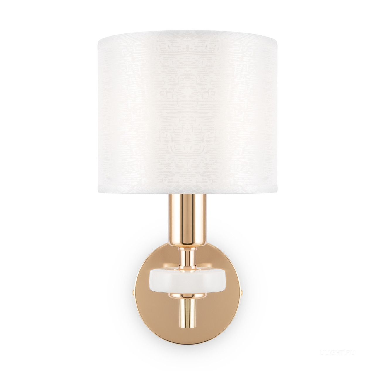 Металлическая арматура золотого оттенка. Абажуры – текстиль на ПВХ кремового цвета. Трендовый керамический декор с имитацией мрамора. Источник света – лампа с цоколем E14.