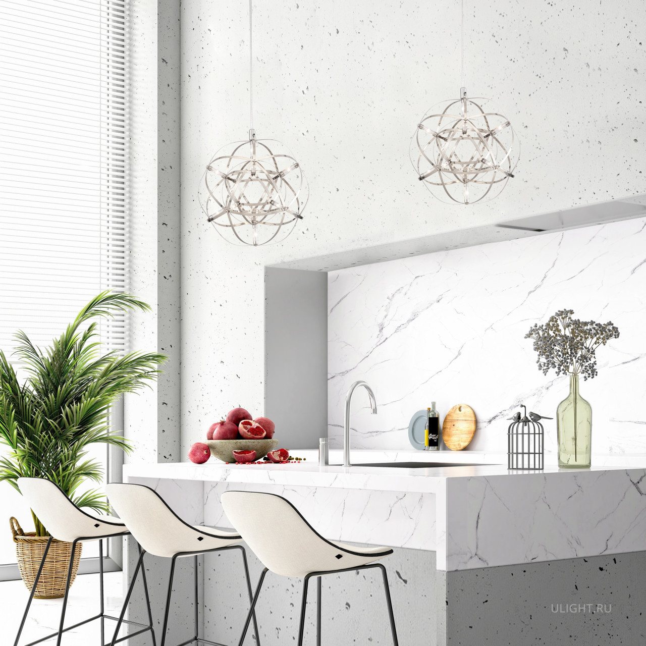 Серия Amber представляет воздушные светильники-сферы, выполненные в трендовом стиле хай-тек. Хромированная металлическая арматура и плафон, сотканный из переплетающихся лент, создают запоминающийся современный образ. Встроенные светодиоды экономят электроэнергию и красиво подсвечивают сферу. В выключенном состоянии светильник выглядит как абстрактное произведение искусства и является полноправной частью декоративного ансамбля интерьера. Серию составляют подвесы различного диаметра – их можно использовать по отдельности, а можно комбинировать в группы. Для обстановки в стиле хай-тек, минимализм, лофт, помещений кафе и ресторанов светильник станет идеальным решением.