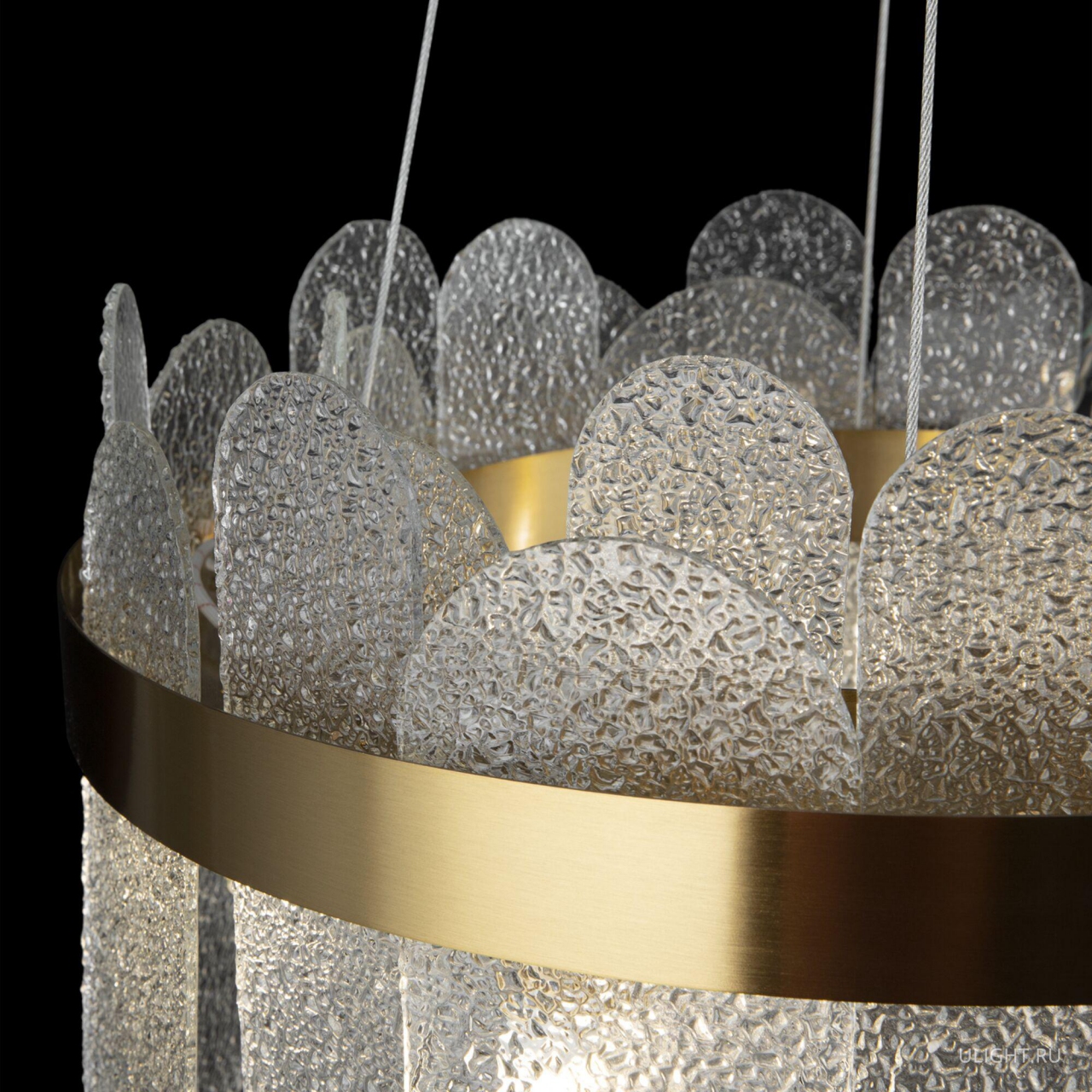 Арматура из металла. Цвет – латунь и никель. Стеклянный декор в двух вариантах: фактурный с эффектом «замороженного стекла» и глянцевый дымчатого оттенка. Источник света – лампа G9.