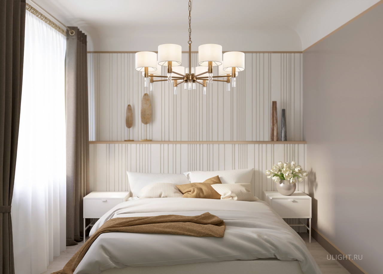 Металлическая арматура. Цвет – латунь. Тканевые абажуры белого оттенка. Декор – прозрачные акриловые трубки. Трендовая комбинация фактур и материалов. Широкий ассортимент. Торшер и подвес с цоколем Е27, лампа, бра и люстры – Е14.