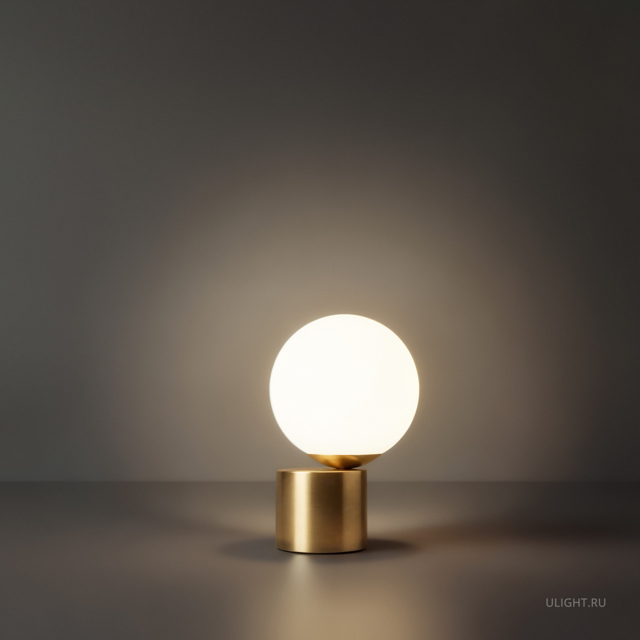 Материал арматуры — металл, цвет — латунь. Шаровидный пафон, рассеянный свет. Функция Touch позволяет включать и выключать свет. Источник света — лампа с цоколем Е14.