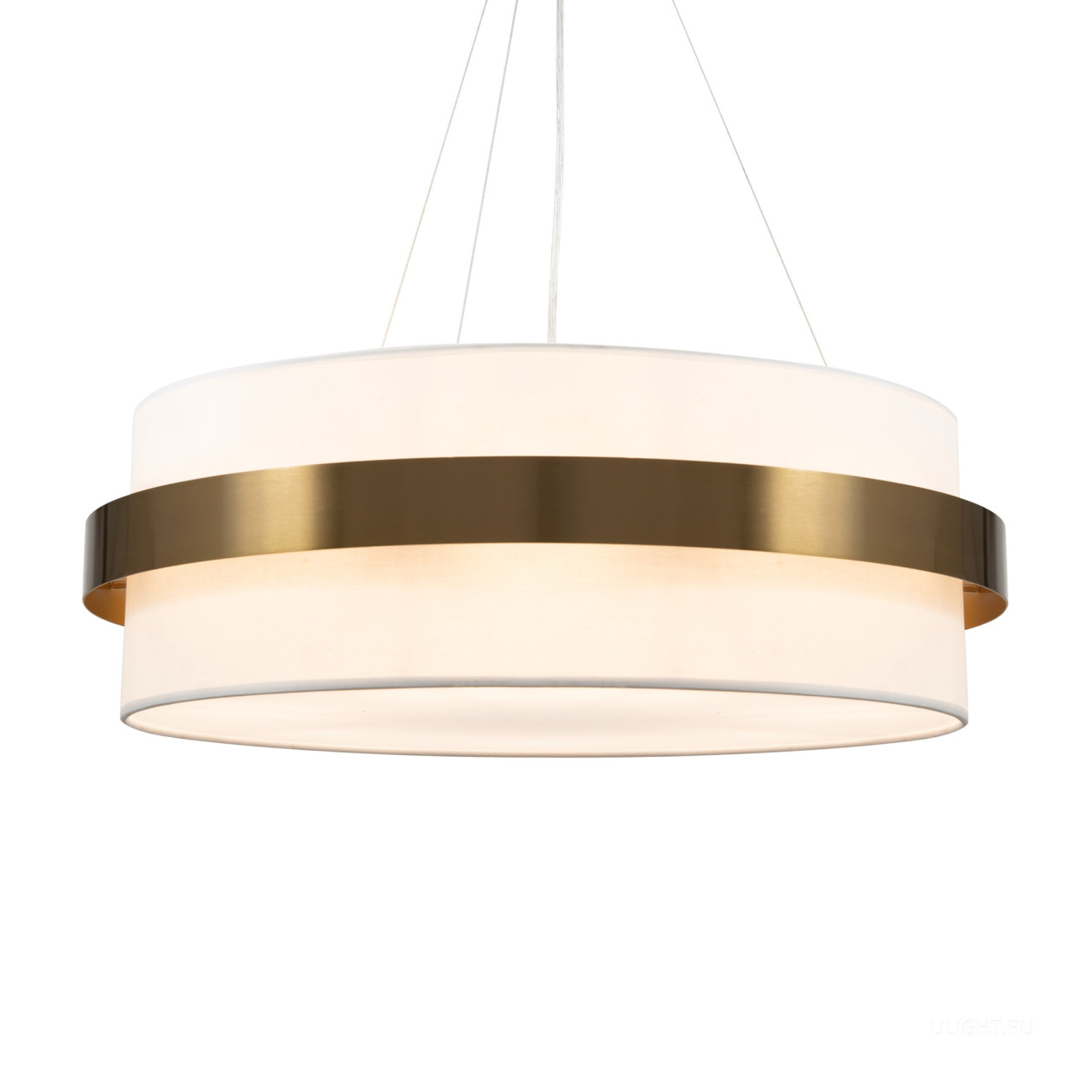 Цилиндрической формы абажур из ткани белого цвета. Декоративная парящая окантовка из металла в цвет арматуры. Регулируется по длине. Компактные размеры подходят для низких потолков и небольших интерьеров. Металлическая арматура, цвет - латунь и никель. Источник света — лампа с цоколем Е14, E27 и для настенного бра дополнительный LED с температурой свечения 3000 K.