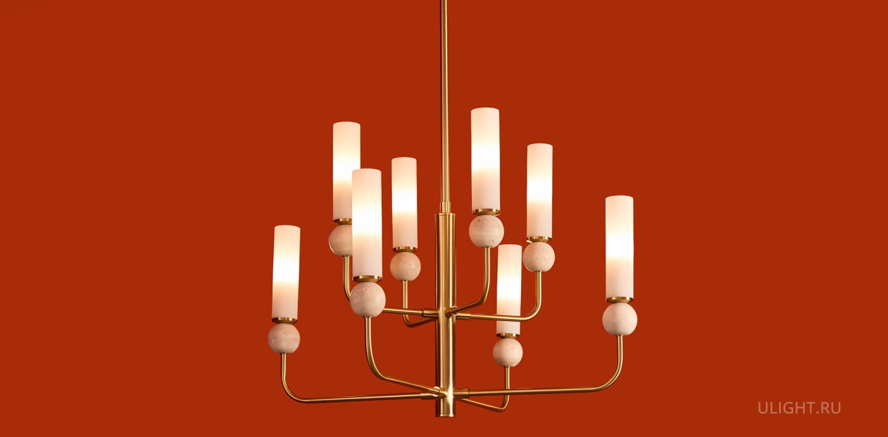 Серия Sunspot использует камень травертин как основной декоративный элемент. Настенные бра в двух вариантах: с матовым белым стеклянным плафоном и со «скользящим» теплым светом. Отличительная черта бра: увеличенный размер плафона и сенсорное включение/выключение без диммирования. Подвесные светильники имеют прозрачные стеклянные плафоны с декоративными шариками из камня травертин. Sunspot включают три модели подвесов разных размеров и форм стеклянной окантовки на плафон. Арматура — металл латунного и черного цвета Источники света LED 3000K и цоколь G9. Настольная лампа с touch переключателем . Серия создает комплексное зональное и акцентное освещение, подходящее для создания уютной атмосферы.