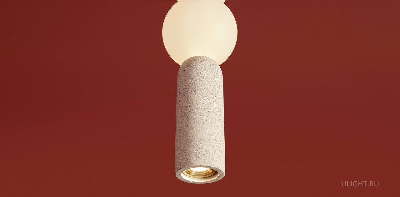 Материал арматуры — металл белого цвета, плафоны выполнены из светлого микроцемента. Светильники представлены в двух версиях: со встроенным LED-источником освещения с цветовой температурой 2700К, а также с цоколем E27. Минималистичный дизайн в белом цвете идеально подходит для современных интерьеров в стиле лофт или скандинавском стиле.