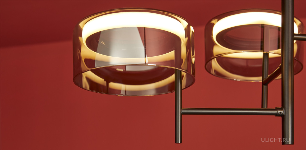 Материал арматуры — металл, цвет — черный. Плафоны выполнены из стекла дымчатого цвета. Светильники представлены в подвесном и напольном исполнении и оснащены LED-источником света с цветовой температурой 3000К. Сочетание металла и затемненного стекла создает выразительную атмосферу в современных интерьерах таких как минимализм и лофт.