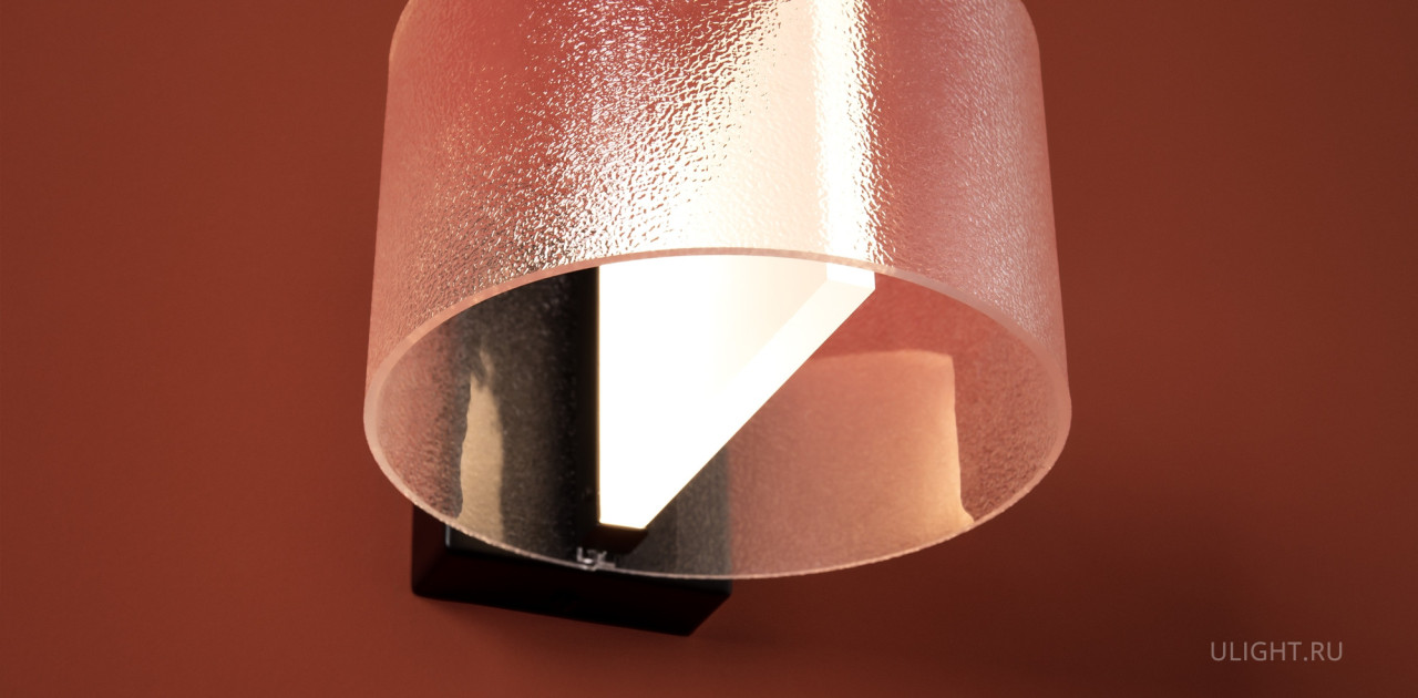Материал арматуры — металл, цвет — черный. Потолочный, настенный и подвесной светильники оснащены LED-источниками света. Цветовая температура 3000К. Прозрачный рельефный плафон «парящий в воздухе» с эффектом замороженного стекла. Подходит для интерьеров в стиле минимализм и лайт лофт.