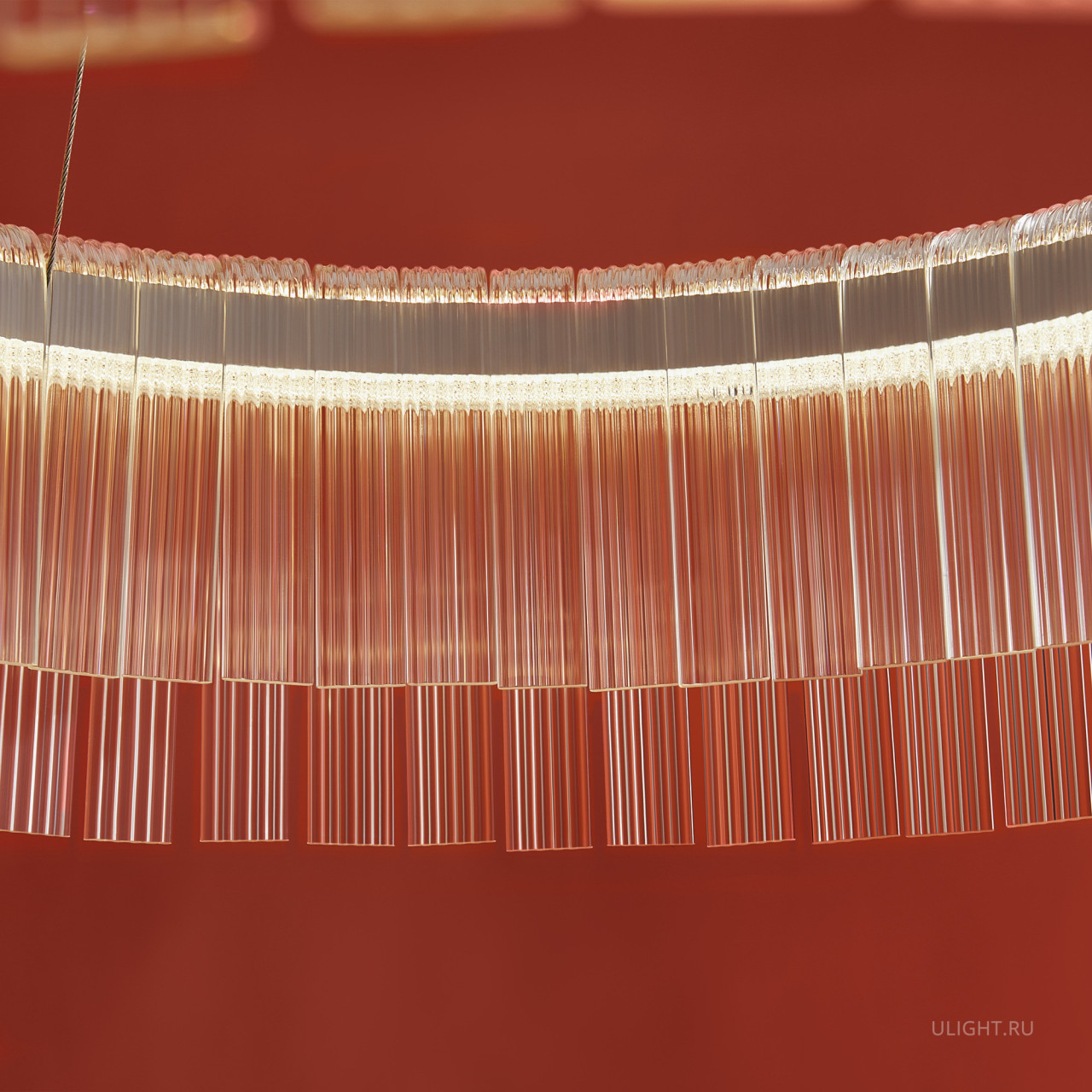 Материал арматуры — металл, выполненный в белом цвете. Подвесной светильник оснащен LED-источником света с цветовой температурой 2700К, который растекается по рельефным, стеклянным декоративным элементам плафона. Подходит для современных светлых интерьеров.