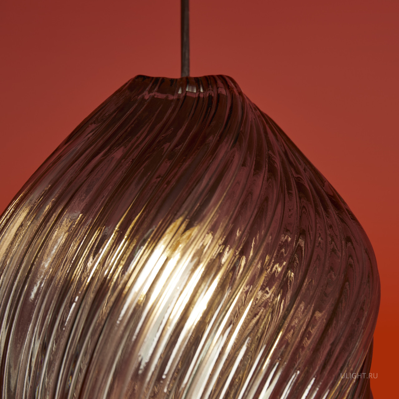 Материал арматуры металл черного цвета и плафоны, выполненные из стекла. Подвесные светильники в двух размерах и разных цветовых решения: дымчатый, зеленый, янтарный и темно-сине-зеленый. Светильники с цоколем E27. Рельефное стекло флористической формы создают выразительную игру бликов в пространстве и преломляя свет, наполняют интерьер переливами цвета. Рекомендовано использование в одном интерьере несколько размеров и цветов.
