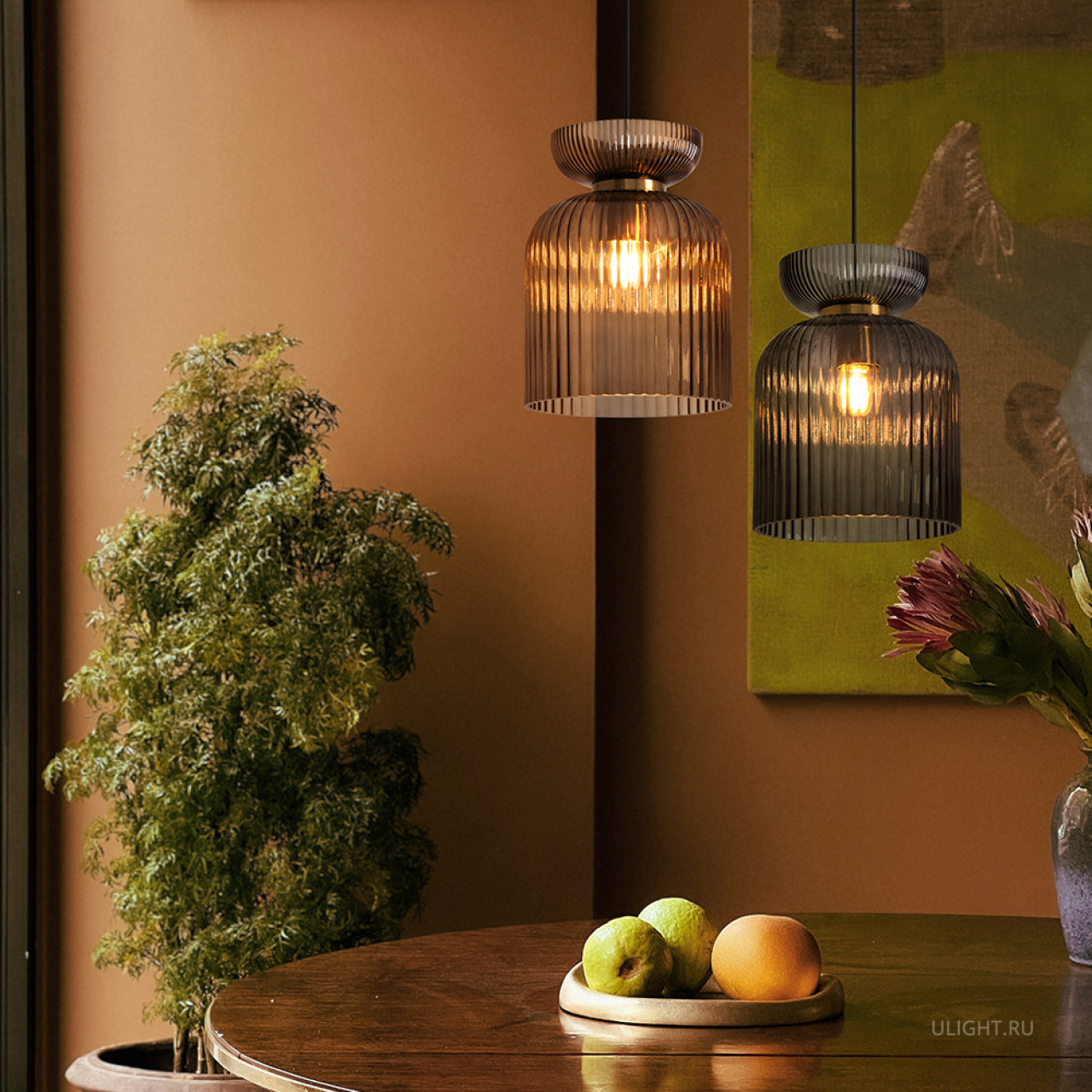 Материал арматуры — металл, цвет — черный. Подвесной светильникс цоколем E27. Рельефный стеклянный плафон восточной формы, с рельефным стеклом в двух цветах:коричневый и дымчатый. Подходит для интерьеров в неоклассическом стиле и пространств в стиле лофт.