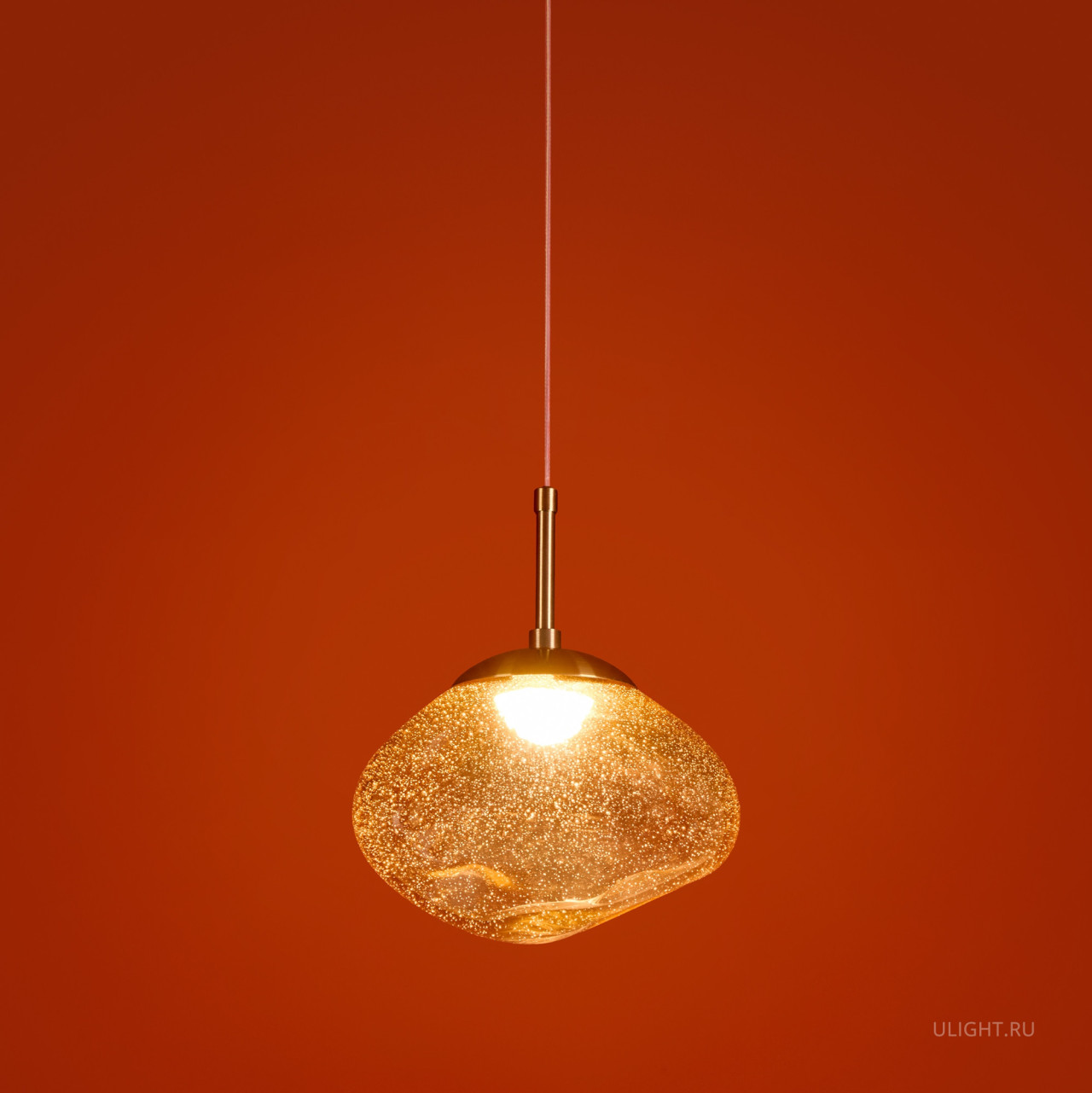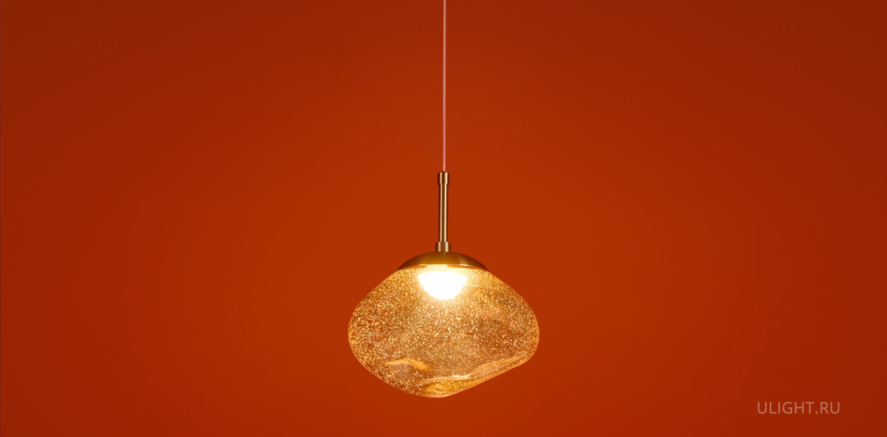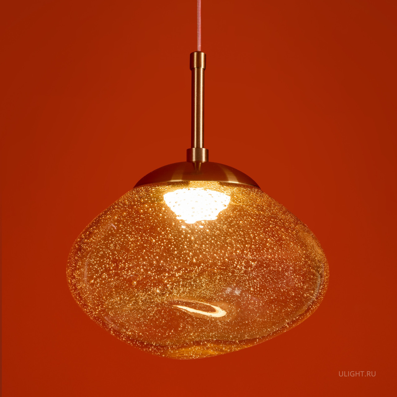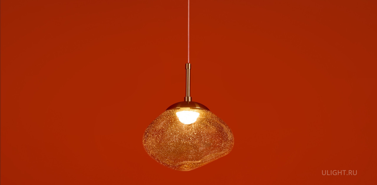 Арматура — металл. Стеклянные плафоны с пузырьками в трёх цветах: дымчатый, прозрачный, янтарный. Интегрированный LED источник света 3000К, Ra 80, угол 180°. Высота регулируется.