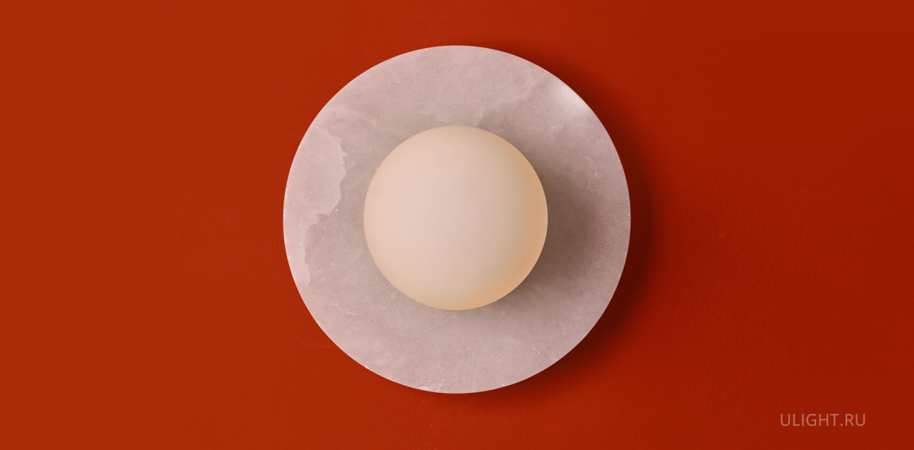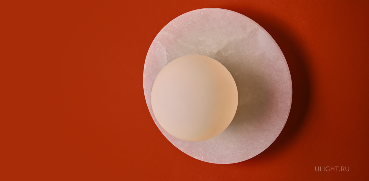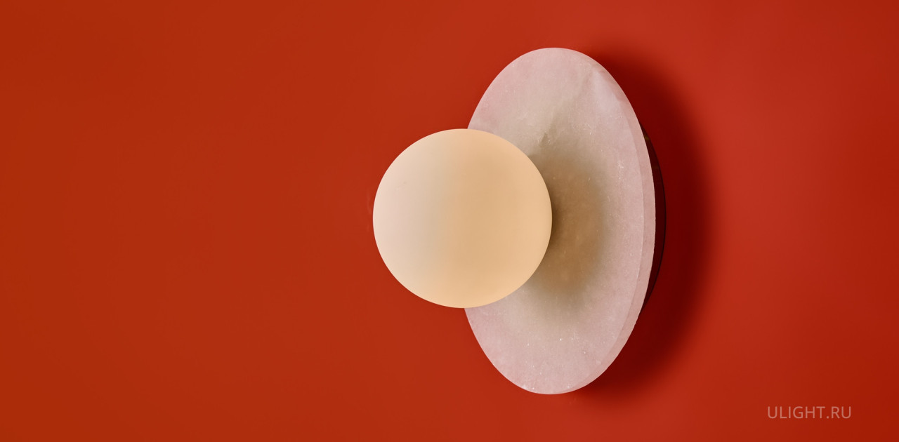 Арматура — металл. Плафоны из алебастра/камня и матового белого стекла. Версии с лампами G9 (не в комплекте) и с LED источником света. Высота регулируется.