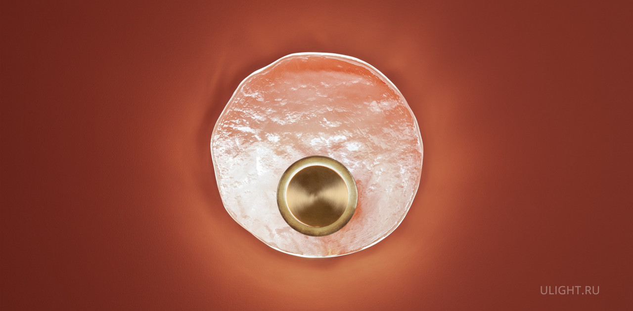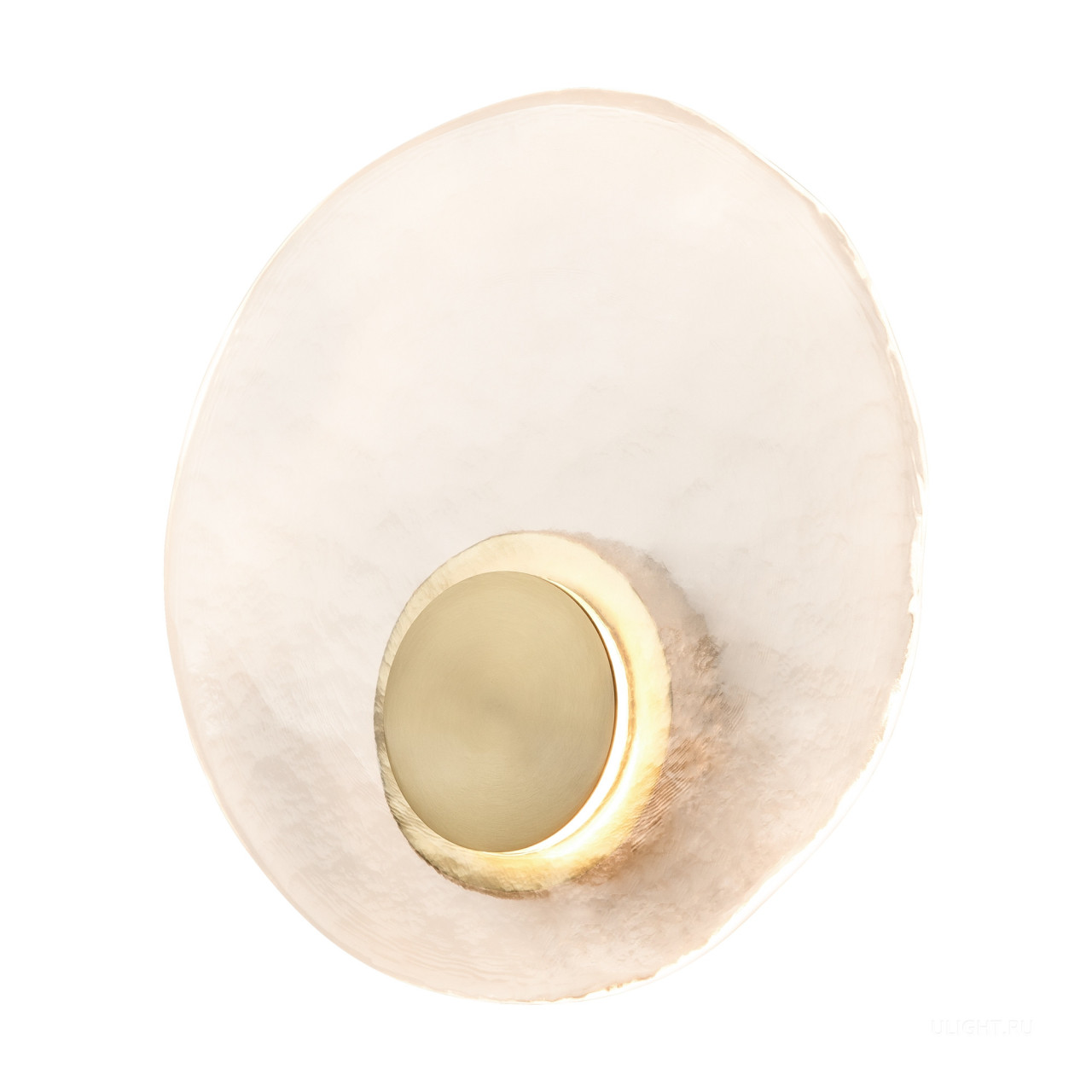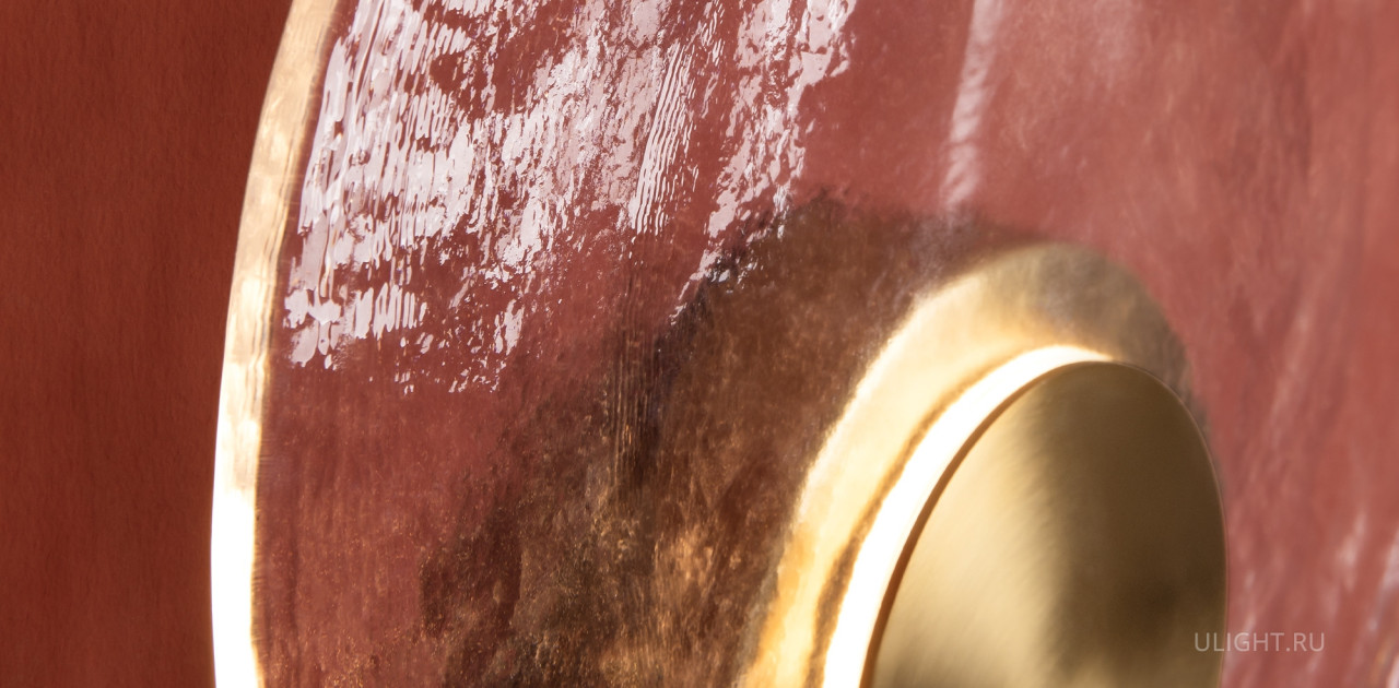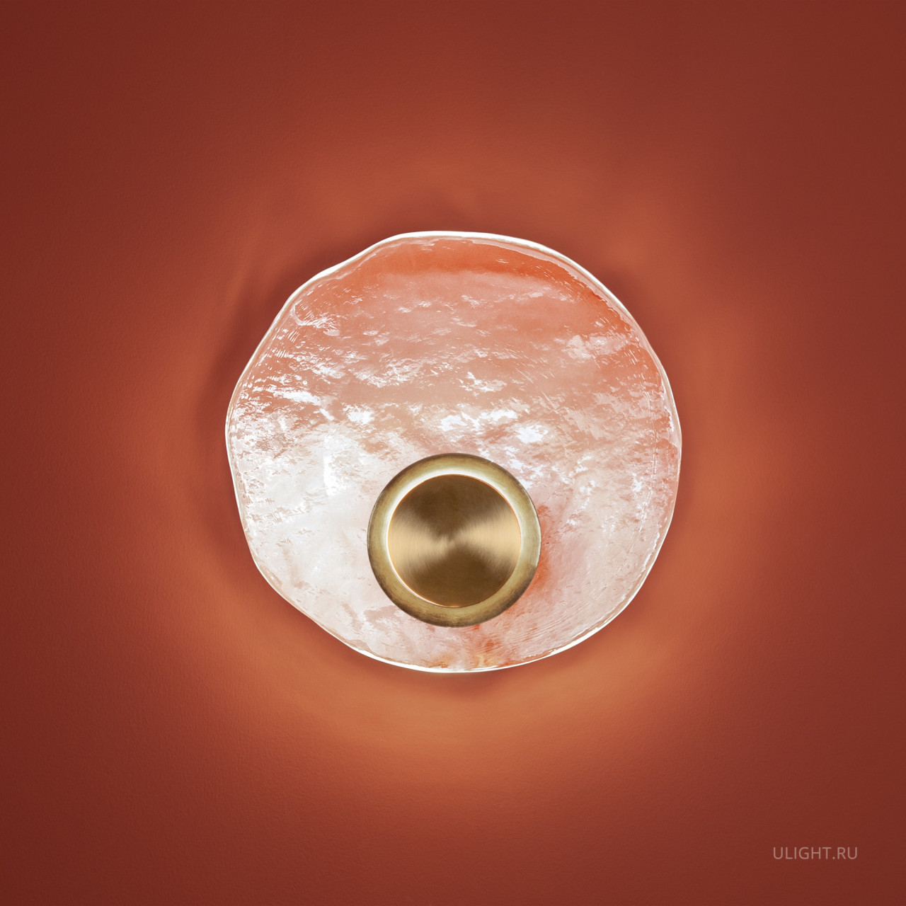 Материал арматуры — металл, цвет — латунь. Настенные светильники оснащены LED-источником света с цветовой температурой 2700К. Уникальное стекло ручного производства обеспечивает равномерное свечение всей поверхности плафона. Для достижения наилучшего светового эффекта рекомендуется использовать в сочетании с основными источниками света.