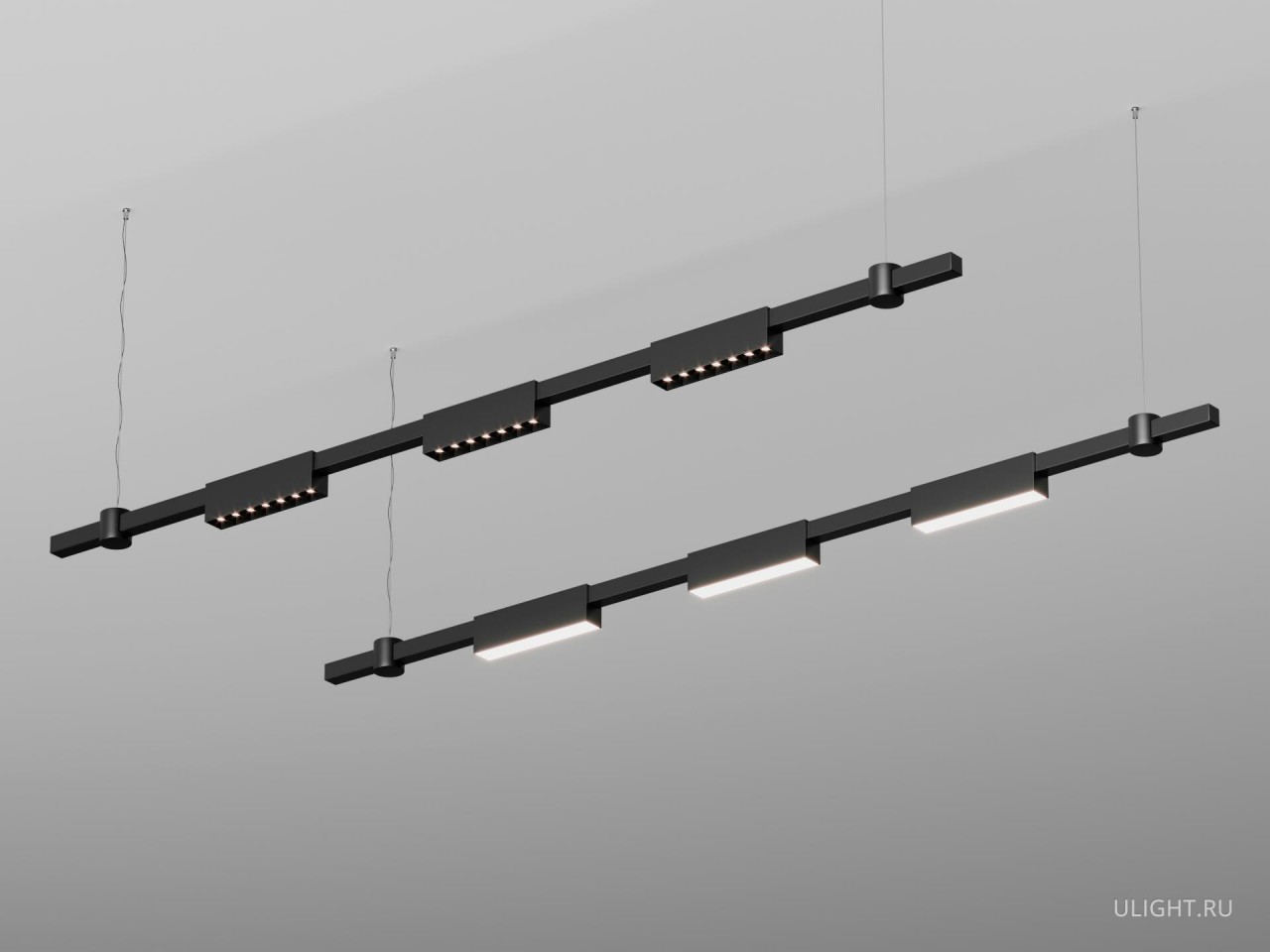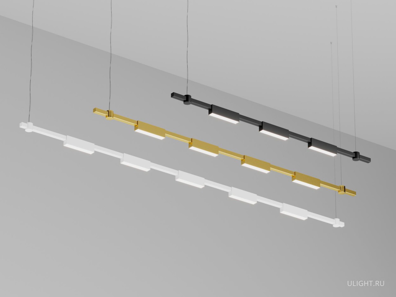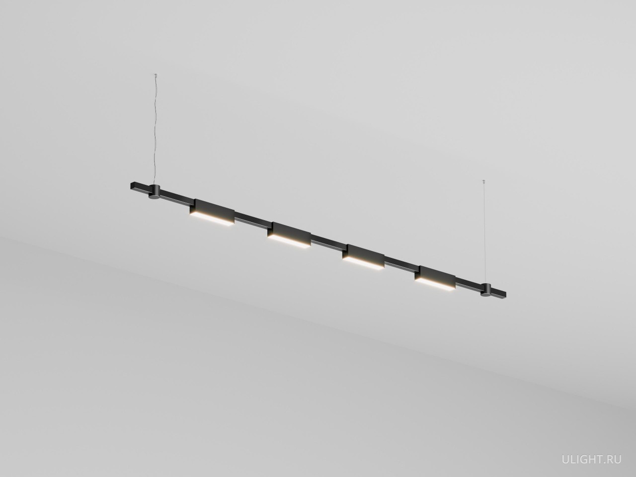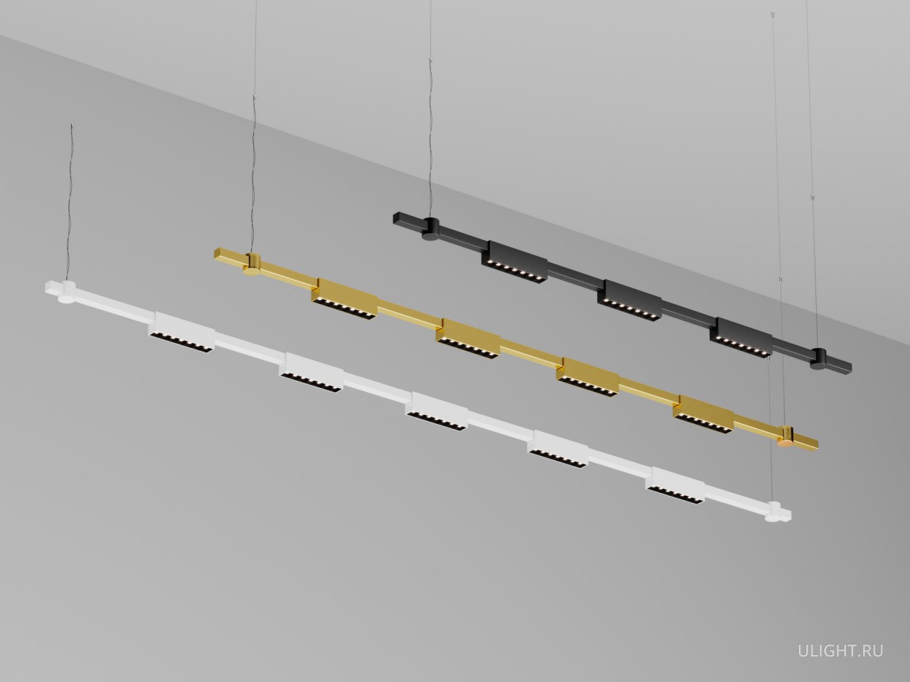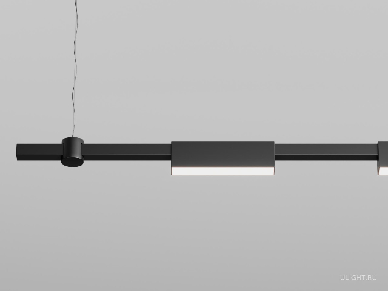 Световая инсталляция состоит из горизонтального крепления накладного монтажа и светодиодных светильников. Минималистичная линия света скрывает в себе яркий и современный источник света. Линейный светильник создает спокойный рассеивающий свет. Модули с матовым рассеивателем и широким углом света 120° обеспечивают высокий уровень зрительного комфорта и исключают слепящий эффект. Подвесы поставляются в комплекте.