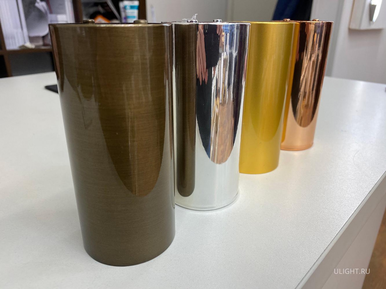В ассортименте представлены разные цвета корпуса: черный (RAL9005) и белый (RAL9003). Для более изысканного интерьера мы создали светильники в изящных цветах: латунь, бронза, медь, хром, золото. Корпус также можно окрасить в любой из 2000 оттенков по шкале RAL. Это возможность позволяет гармонично дополнить дизайн даже самого изысканного интерьера.