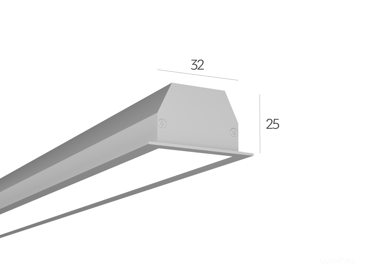 Алюминиевый корпус для встраиваемого монтажа — 35(45)х25x 0-3000мм. Мощность до 64Вт (26 Вт/м) — 1м светильника обеспечивает освещение площади до 5м². Тонкая элегантная линия света. Возможна установка в натяжной потолок, КГЛ, бетон, армстронг и грильято.