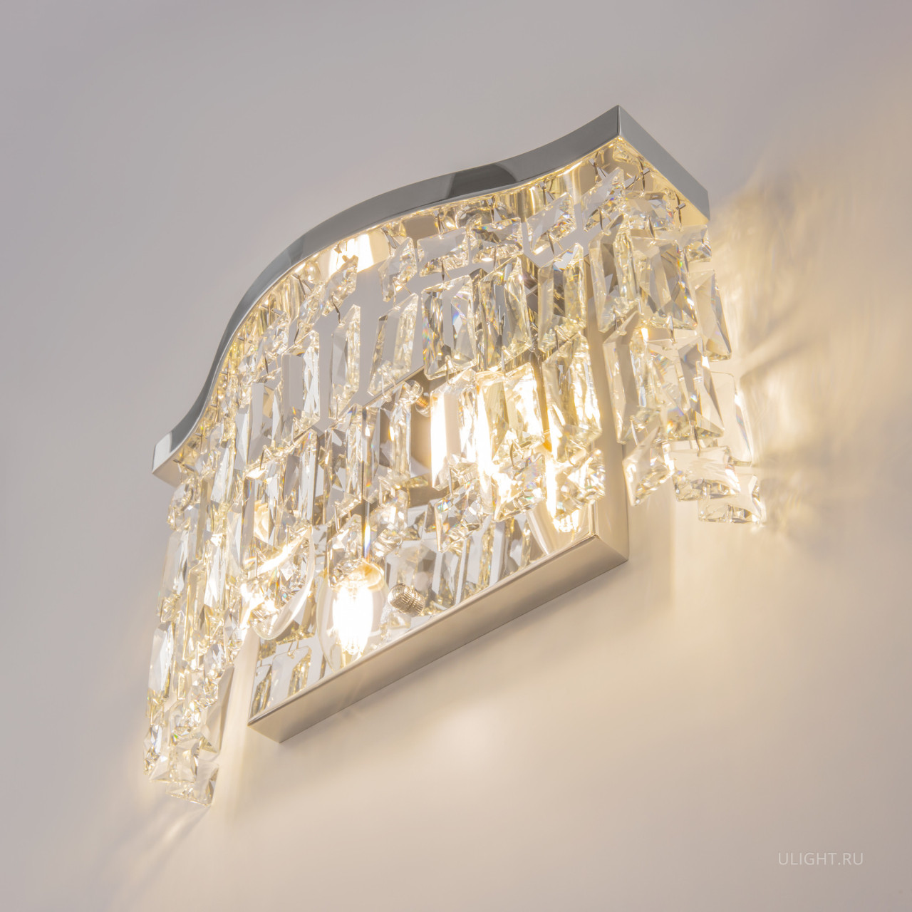 Металлическая арматура в двух оттенках: хром, золото. Декор – прозрачные кристаллы. Потолочные модели имеют два яруса подвесок. Высота подвесной люстры регулируется тросом.