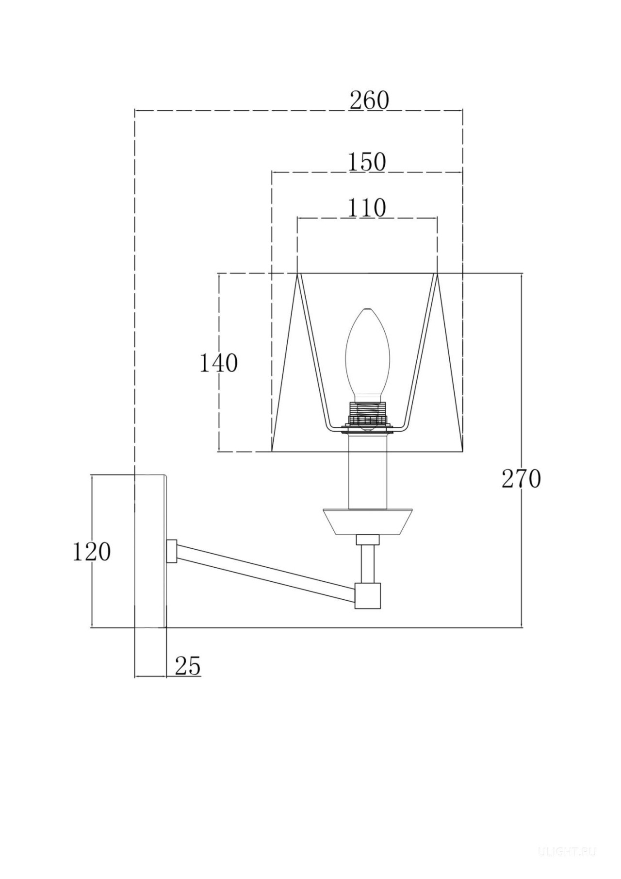 Диаметр верхнего отверстия абажура: 110