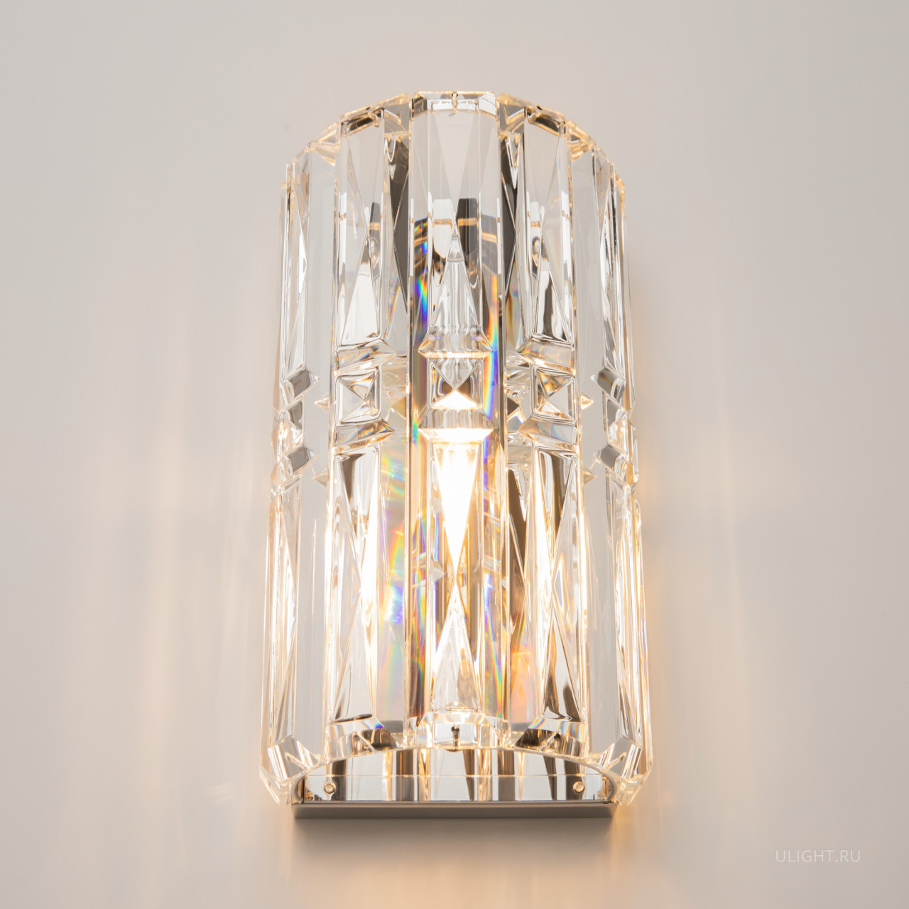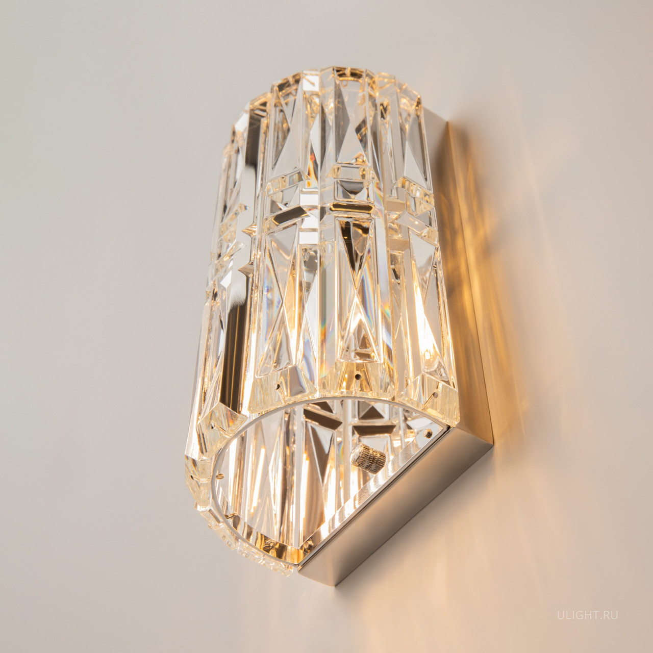 Материал арматуры – металл, оттенки – хром и золото. Декор – прозрачные стек лянные кристаллы. Архитектурная огранка декоративных элементов. Цоколь Е14.