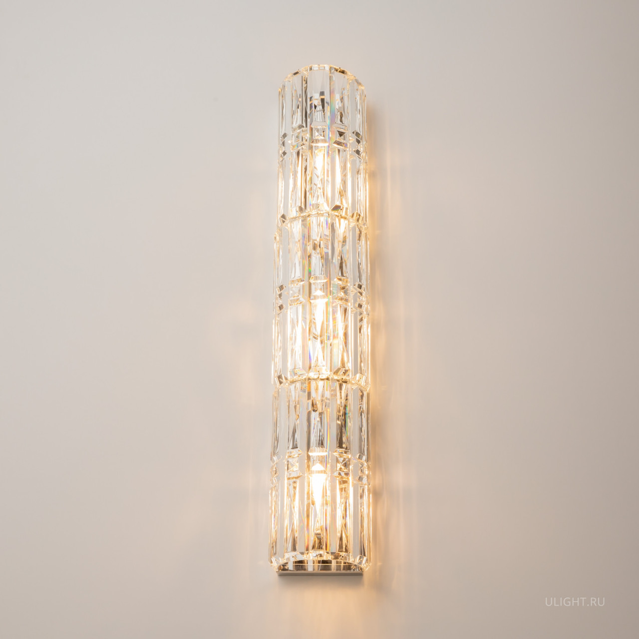 Материал арматуры – металл, оттенки – хром и золото. Декор – прозрачные стек лянные кристаллы. Архитектурная огранка декоративных элементов. Цоколь Е14.