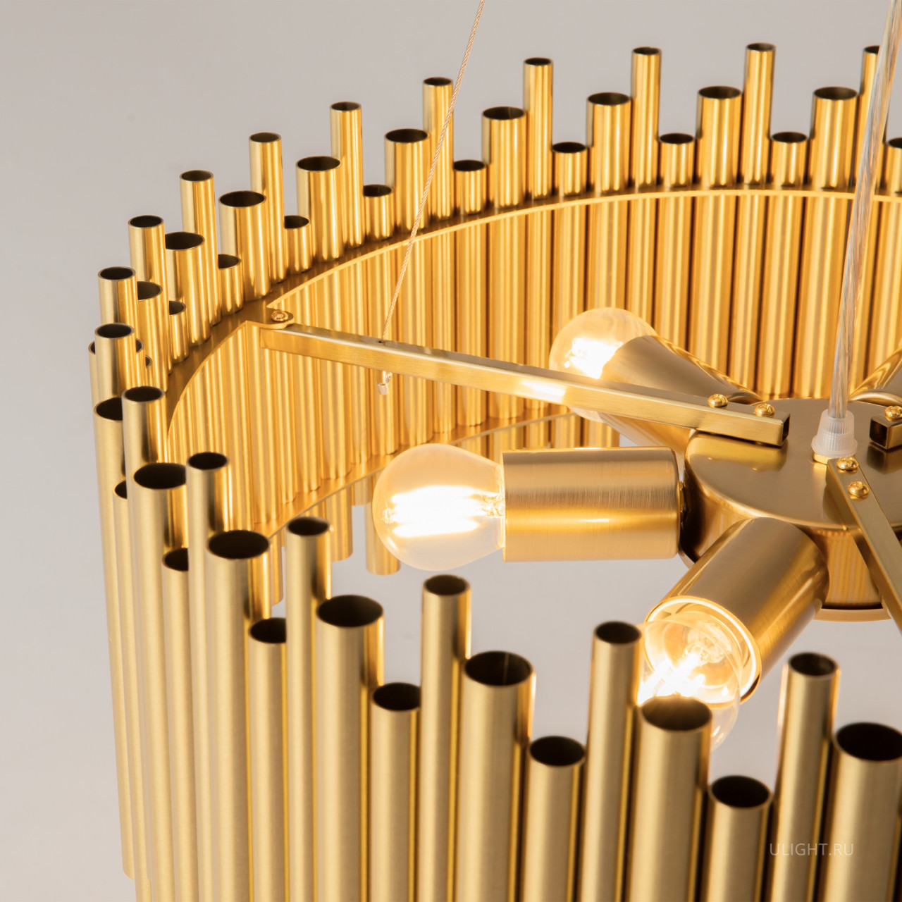 Материал арматуры – металл, цвет – латунь. Декор в виде трубок из нержавеющей стали в бронзовом цвете. Последний ряд декора – стеклянные трубки – обеспечивает невесомый силуэт.