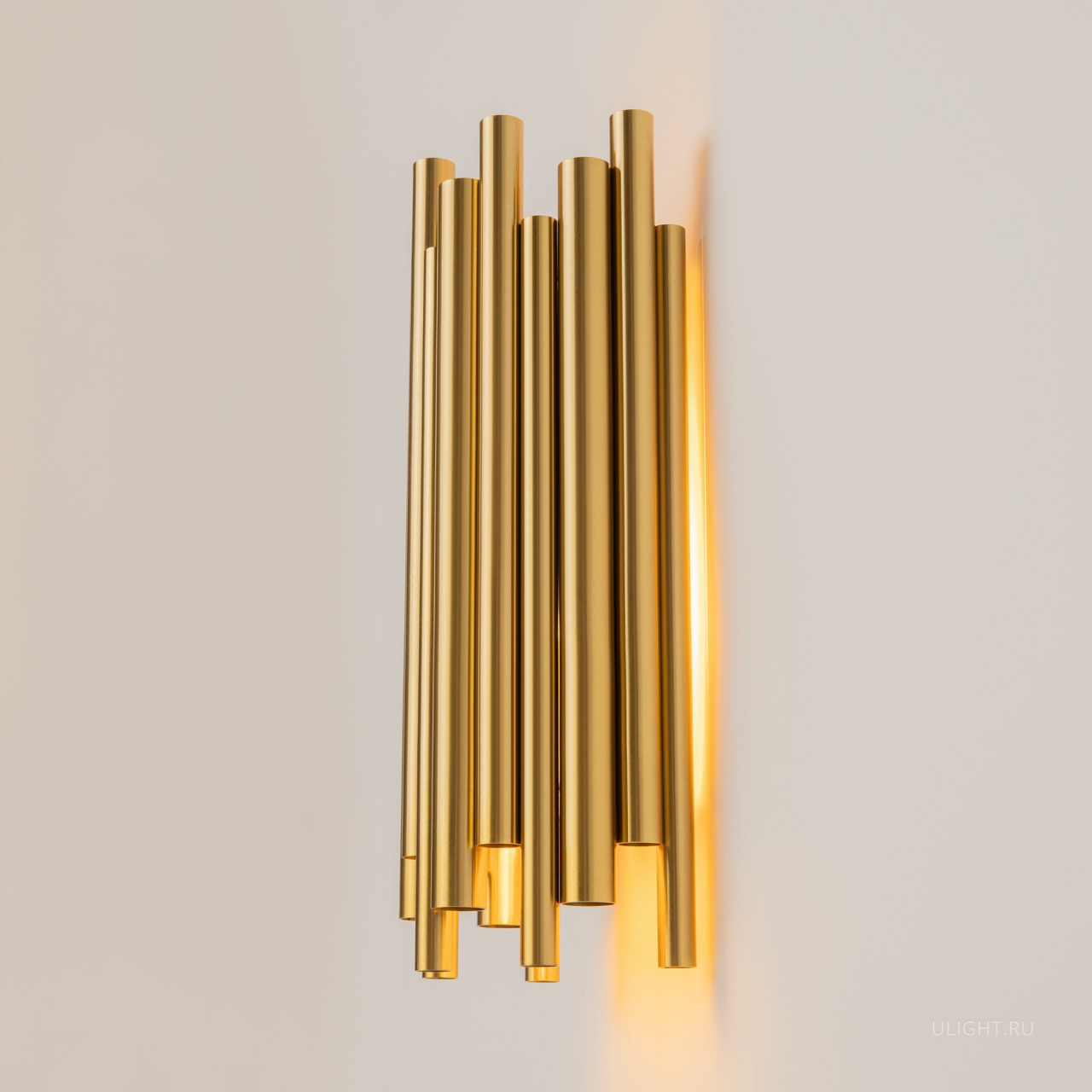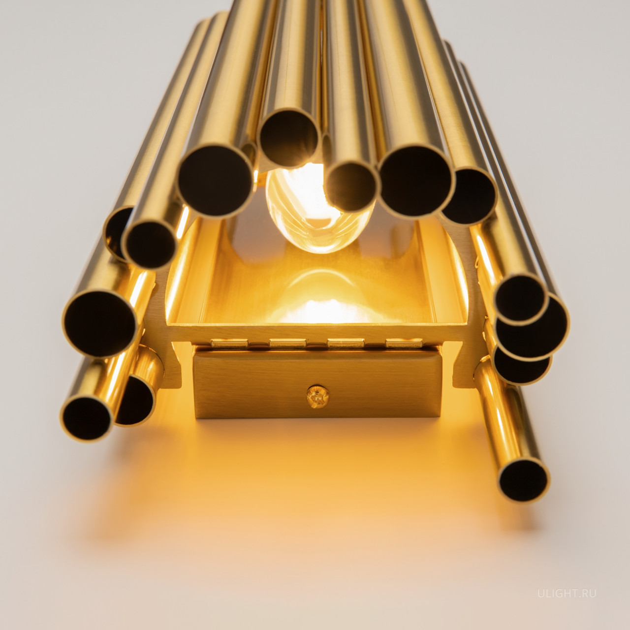 Материал арматуры – металл, цвет – латунь. Декор в виде трубок из нержавеющей стали в бронзовом цвете. Последний ряд декора – стеклянные трубки – обеспечивает невесомый силуэт.
