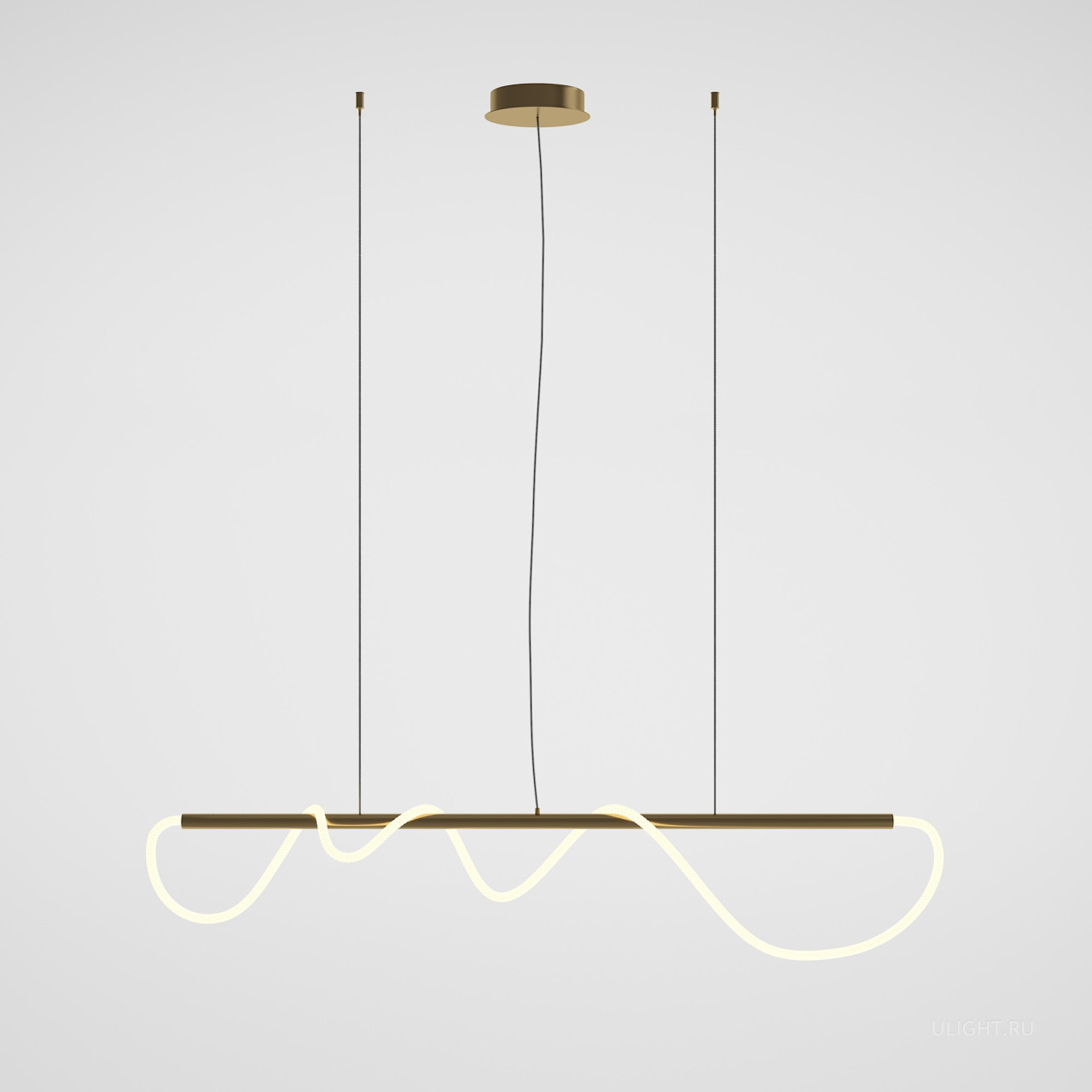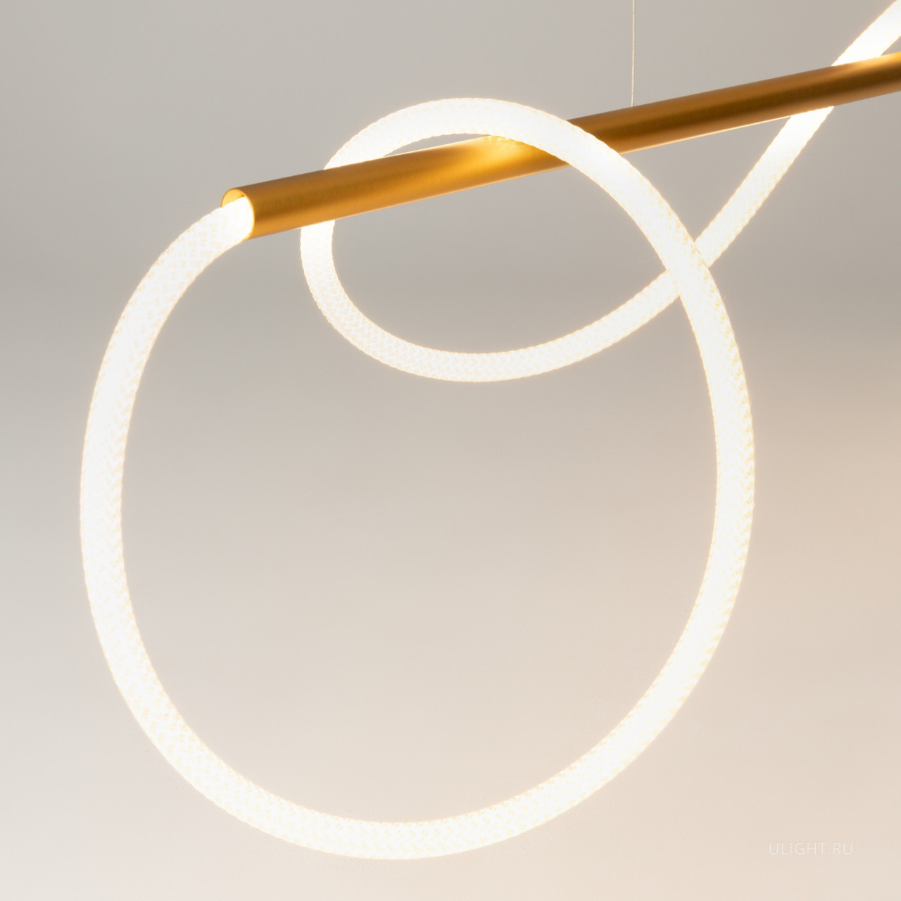 Алюминиевый корпус. Оттенки – золотой, матовый черный. Рассеиватель двух видов – силиконовая трубка и сверхкрепкий жгут (не желтеет со временем, обладает высокой прочностью). Мягкое равномерное свечение благодаря высокой плотности светодиодов. Цветовая температура 3000К. LED-источник света.