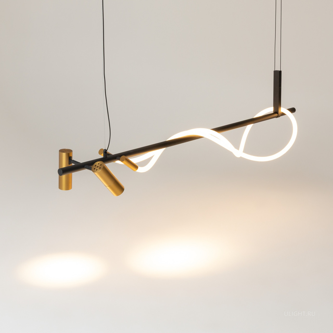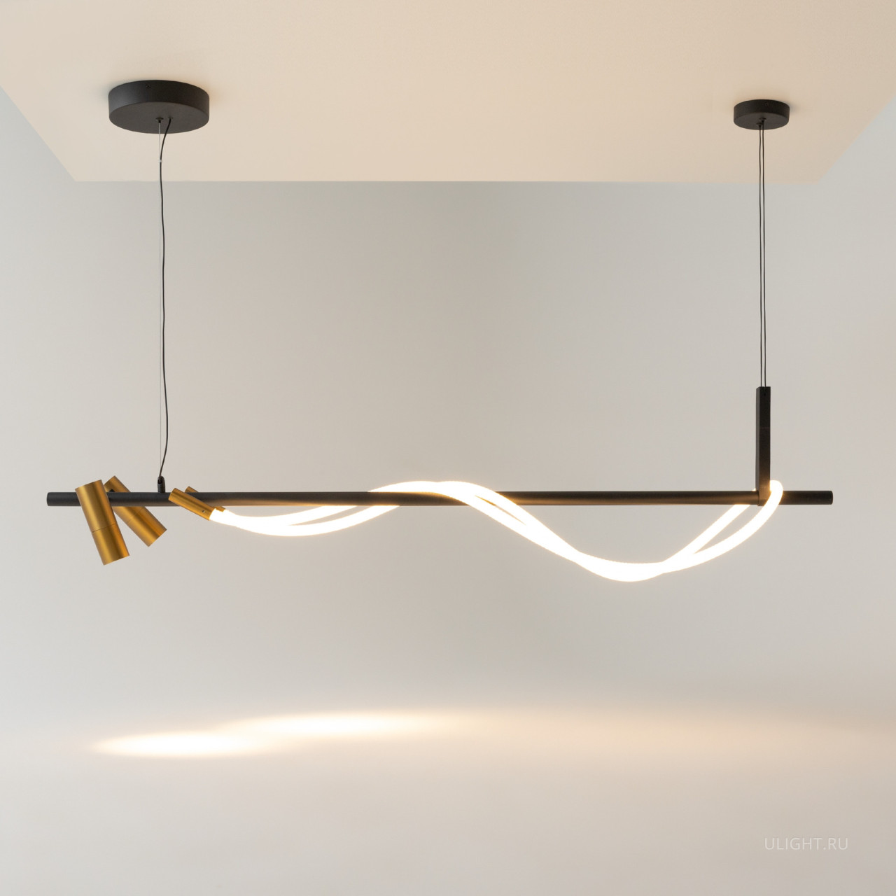 Алюминиевый корпус. Оттенки – золотой, матовый черный. Рассеиватель двух видов – силиконовая трубка и сверхкрепкий жгут (не желтеет со временем, обладает высокой прочностью). Мягкое равномерное свечение благодаря высокой плотности светодиодов. Цветовая температура 3000К. LED-источник света.