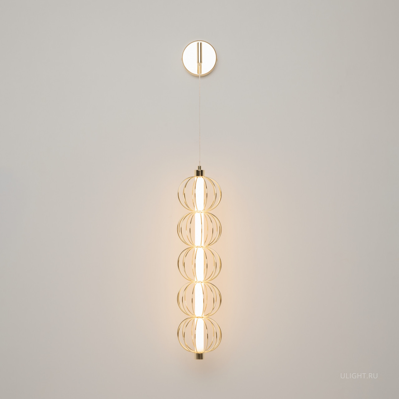 Арматура - металл, цвет - золото. Декоративные проволочные плафоны-сферы - ручная работа. Горизонтальные подвесы в двух вариатах монтажа - накладном и скрытом. Свтовой элемент - силиконоваая трубка с LED-источником. Цветовая температура 3000К.