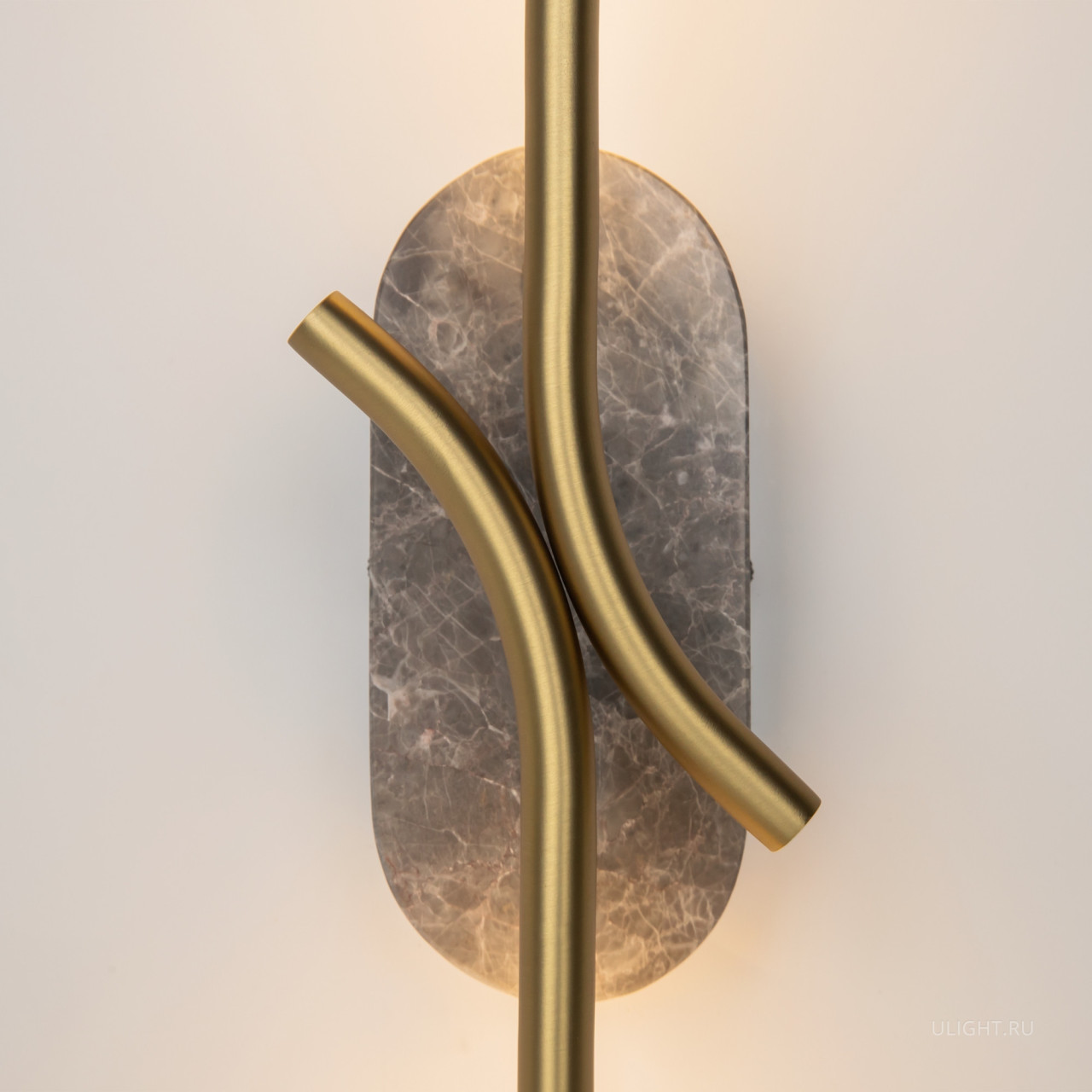 Два варианта основания корпуса. Металлический, цвета – черный и сатинированная латунь. Мрамор, цвета - черный и серый. Плафон-трубка из металла со скрытым рассеивателем. Серия отражает эстетические чувства эпохи Возрождения, искусно сочетая цветовые палитры, формы и материалы, характерные для того периода. LED источник света. Цветовая температура - 3000К.