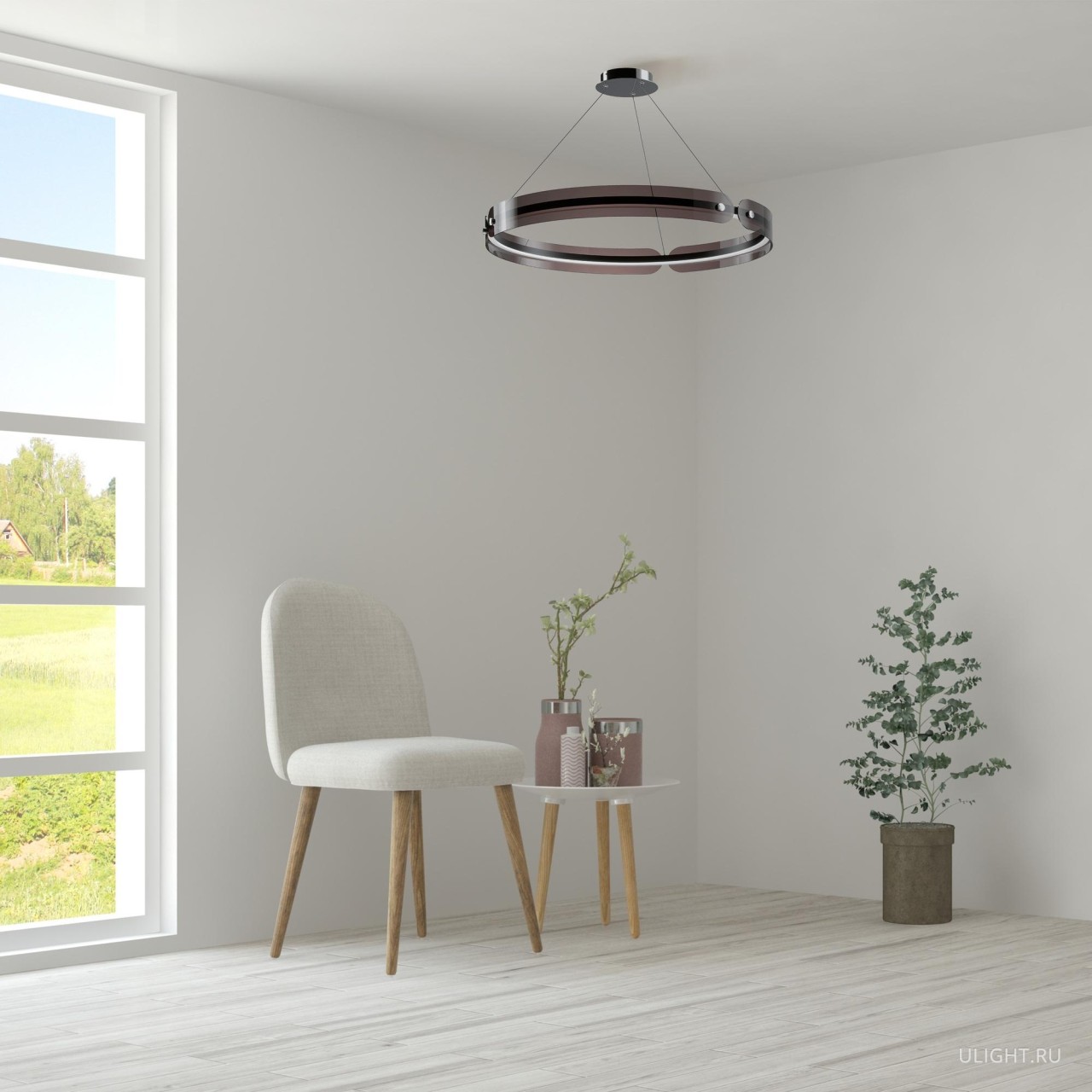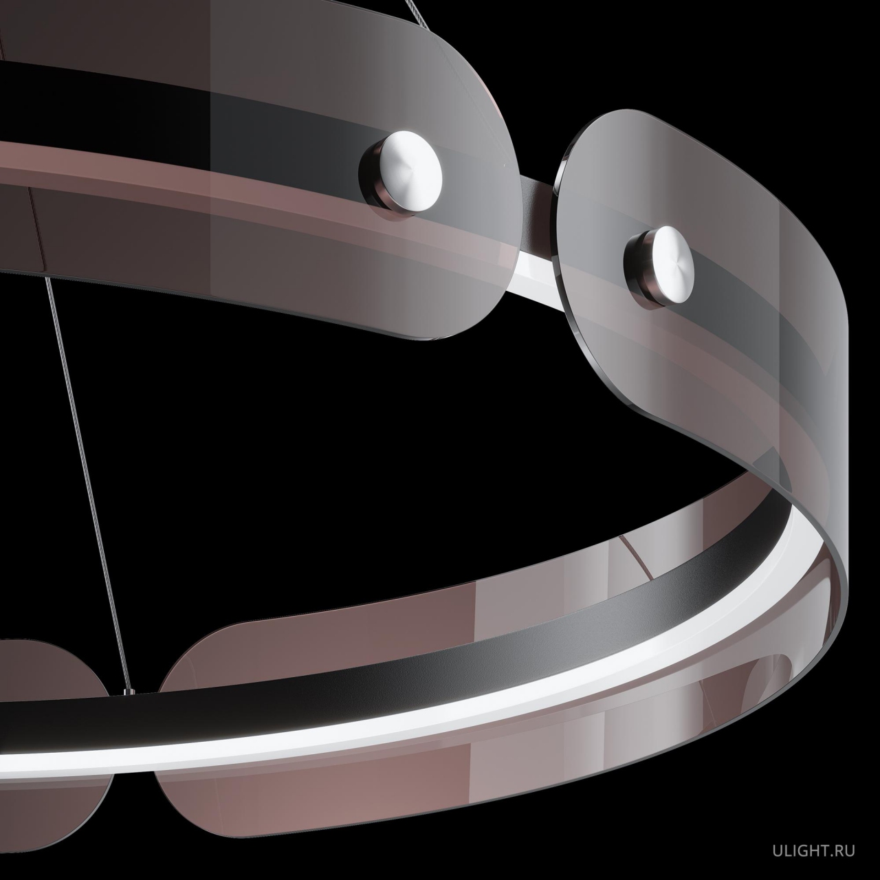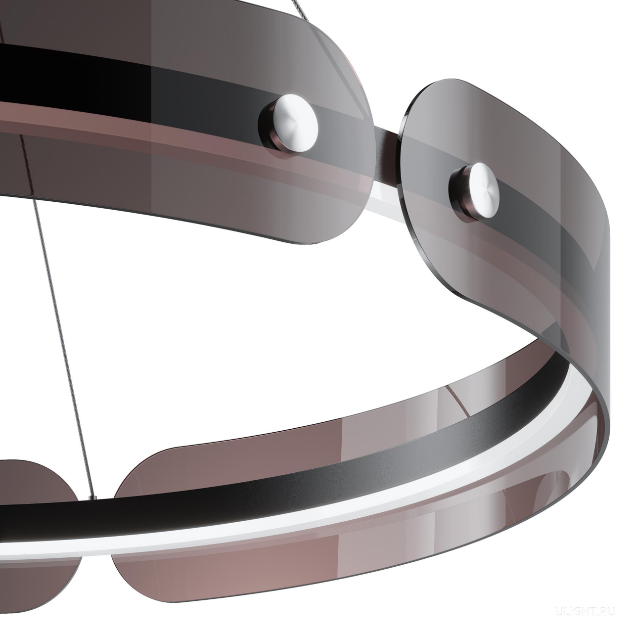Материал арматуры – металл, цвет – серый. Декор из листового акрила обрамляет источник света – светодиодную ленту. Цвет