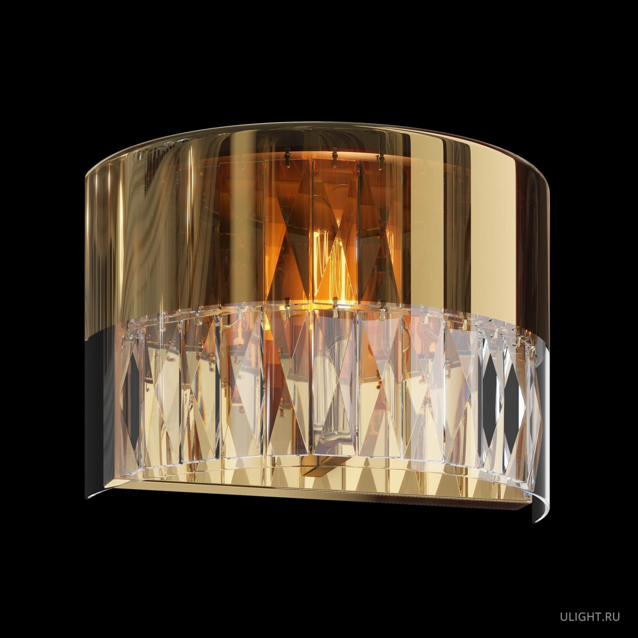 Арматура из нержавеющей стали в двух оттенках: хром, золото. Плафон из выду вного стекла, внутри – хрустальные подвесы. Часть плафона с зеркальным покры тием в тон арматуре. Цоколь Е14.