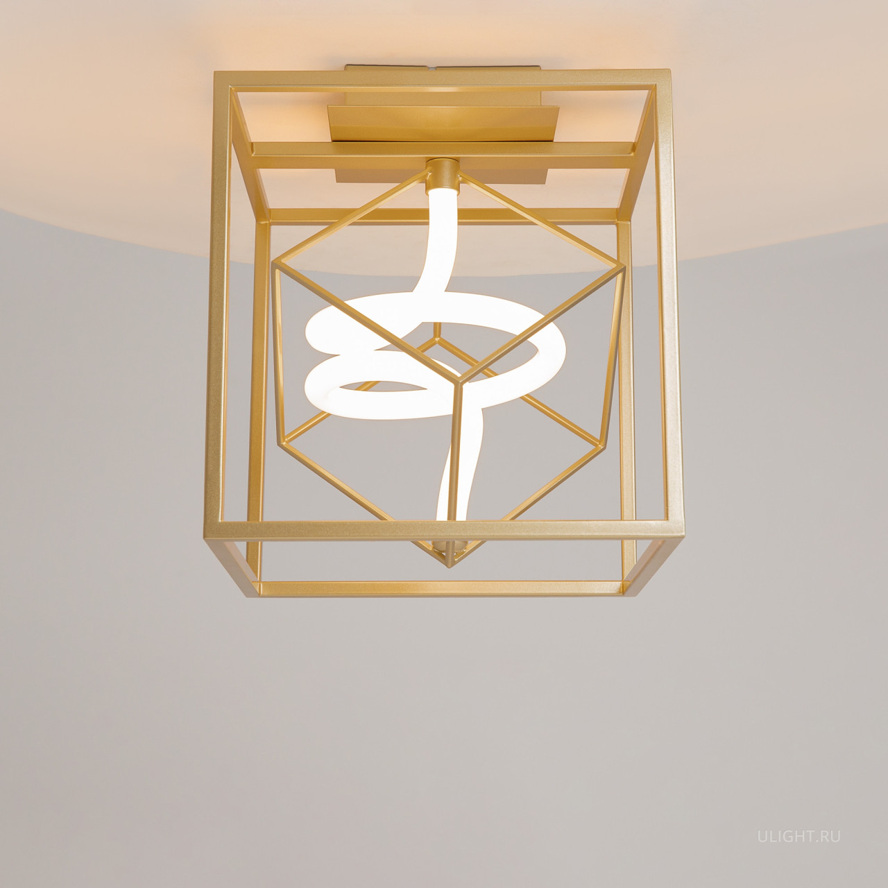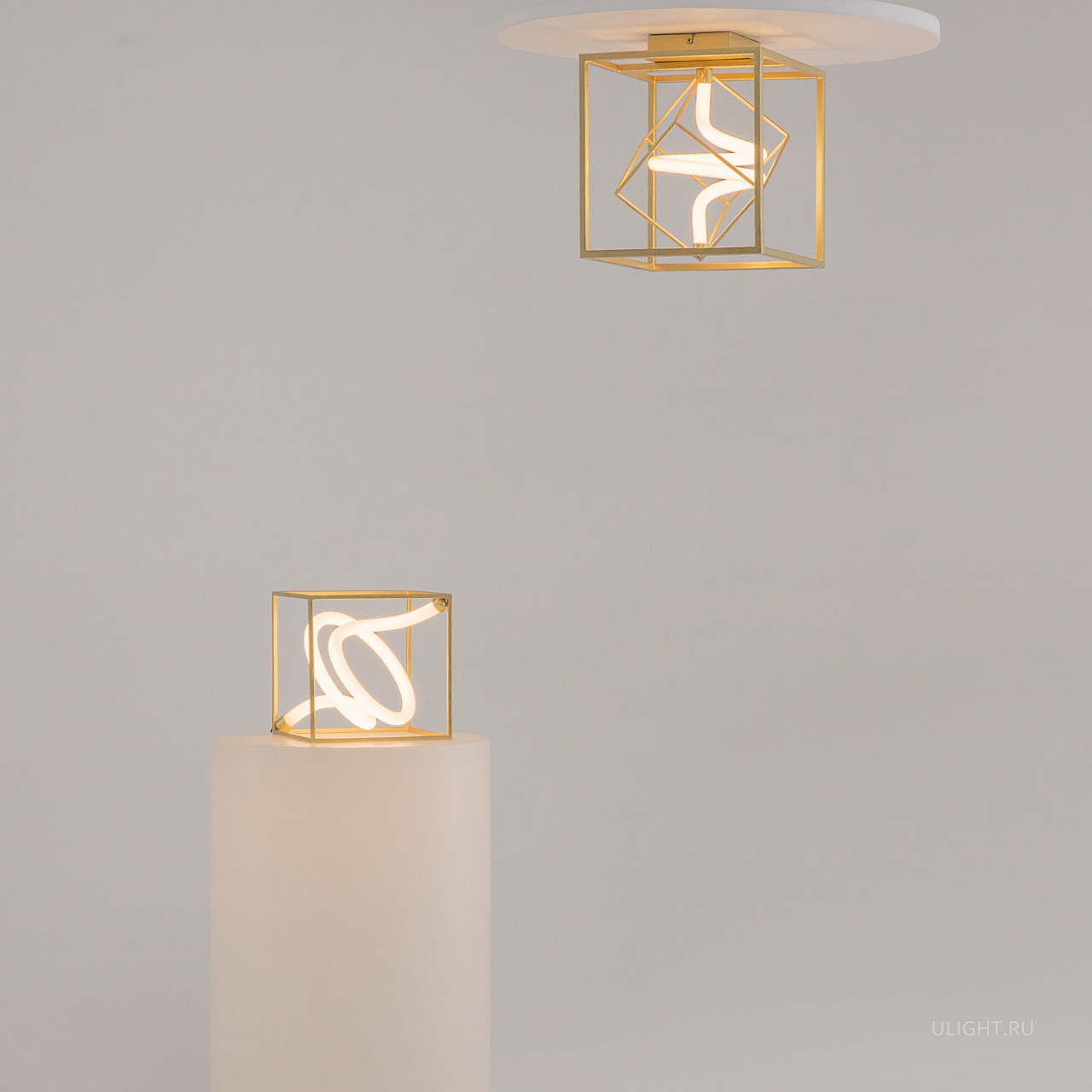 Металлическая арматура, цвет - латунь. Графичный силуэт. Источник света - гибкая неоновая трубка, расположенная внутри арматуры. Угол рассеивания — 120 градусов. Дизайн светильников подходит для интерьера в стиле лофт, а также индустриального стиля. Регулируемый провод подвесного светильника — 3 м.