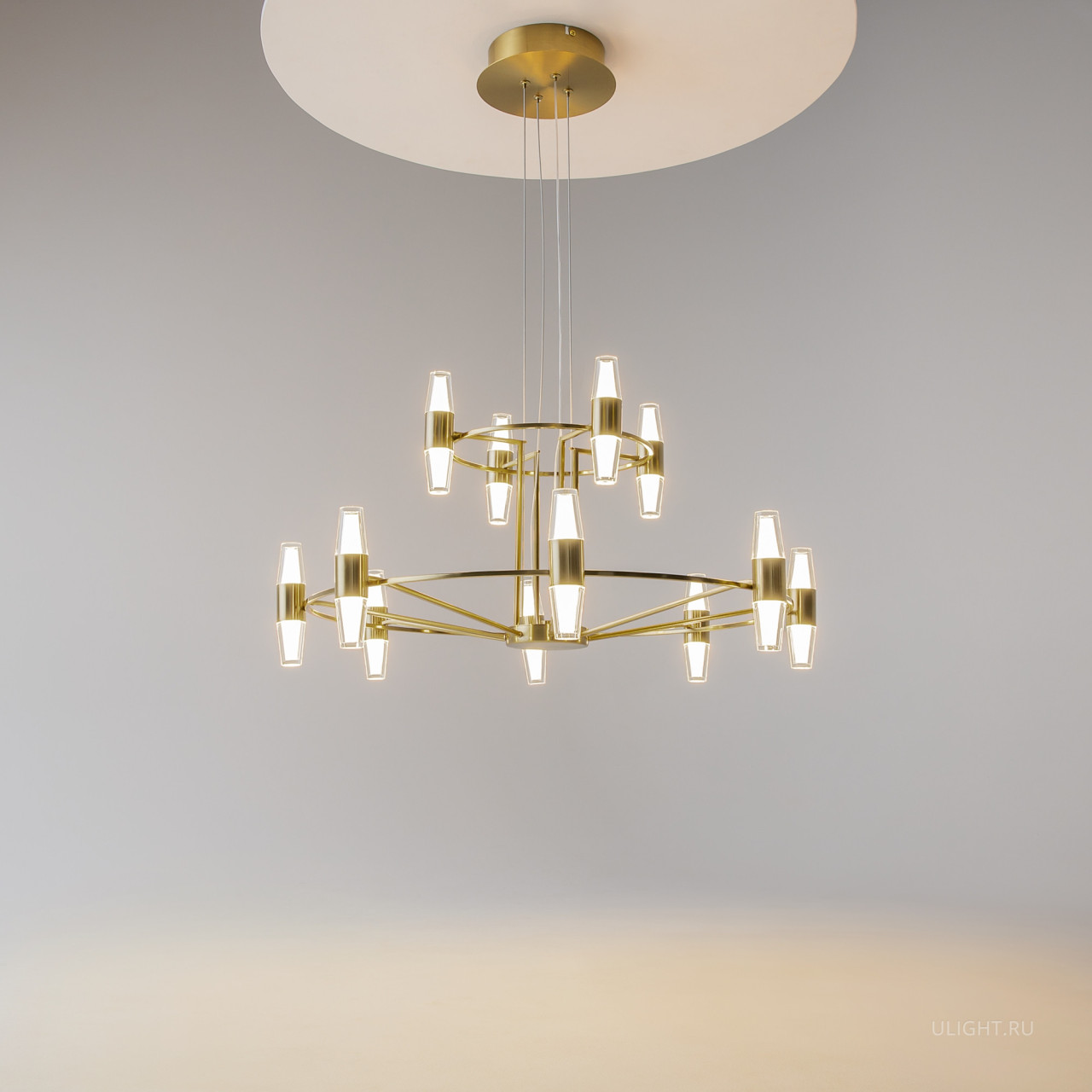Цвет арматуры — латунь. Двойной плафон, выполненный из двух типов высококачественного акрила - матовый и прозрачный. Объемное освещение с равномерным распределением света во всех направлениях. LED-источник света. Комфортный для глаз свет при значительном световом потоке. Регулируемая высота подвесных моделей.