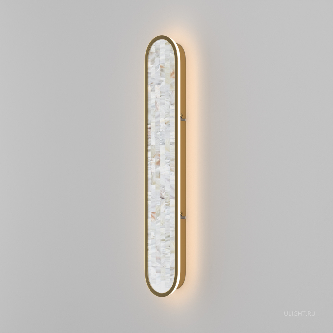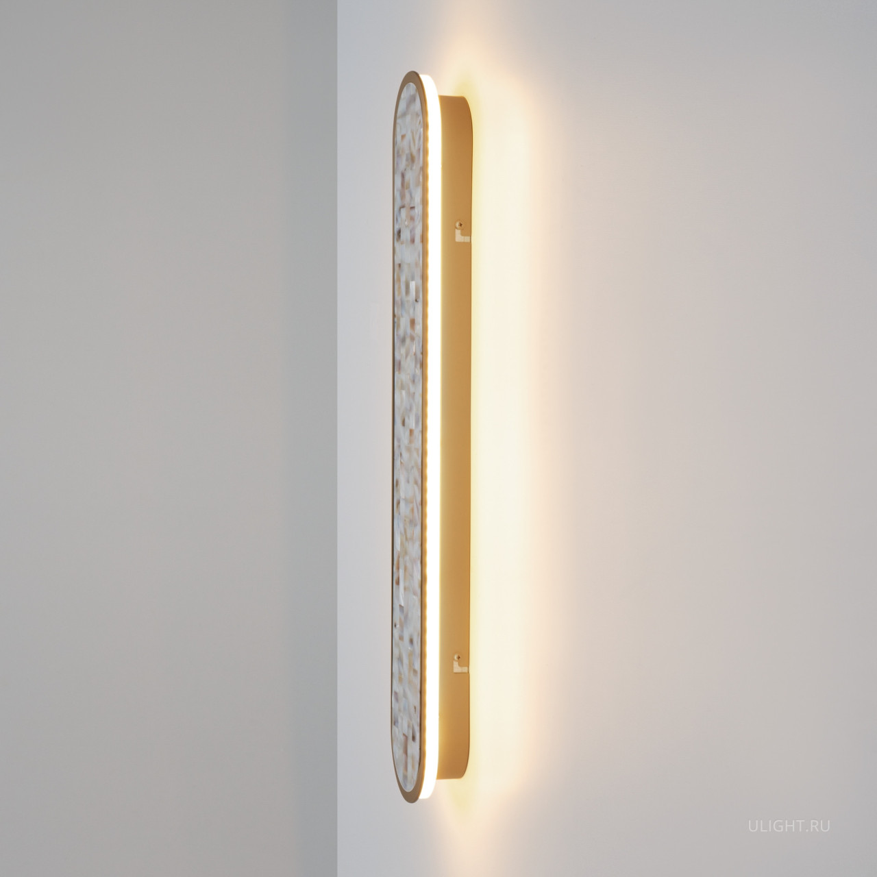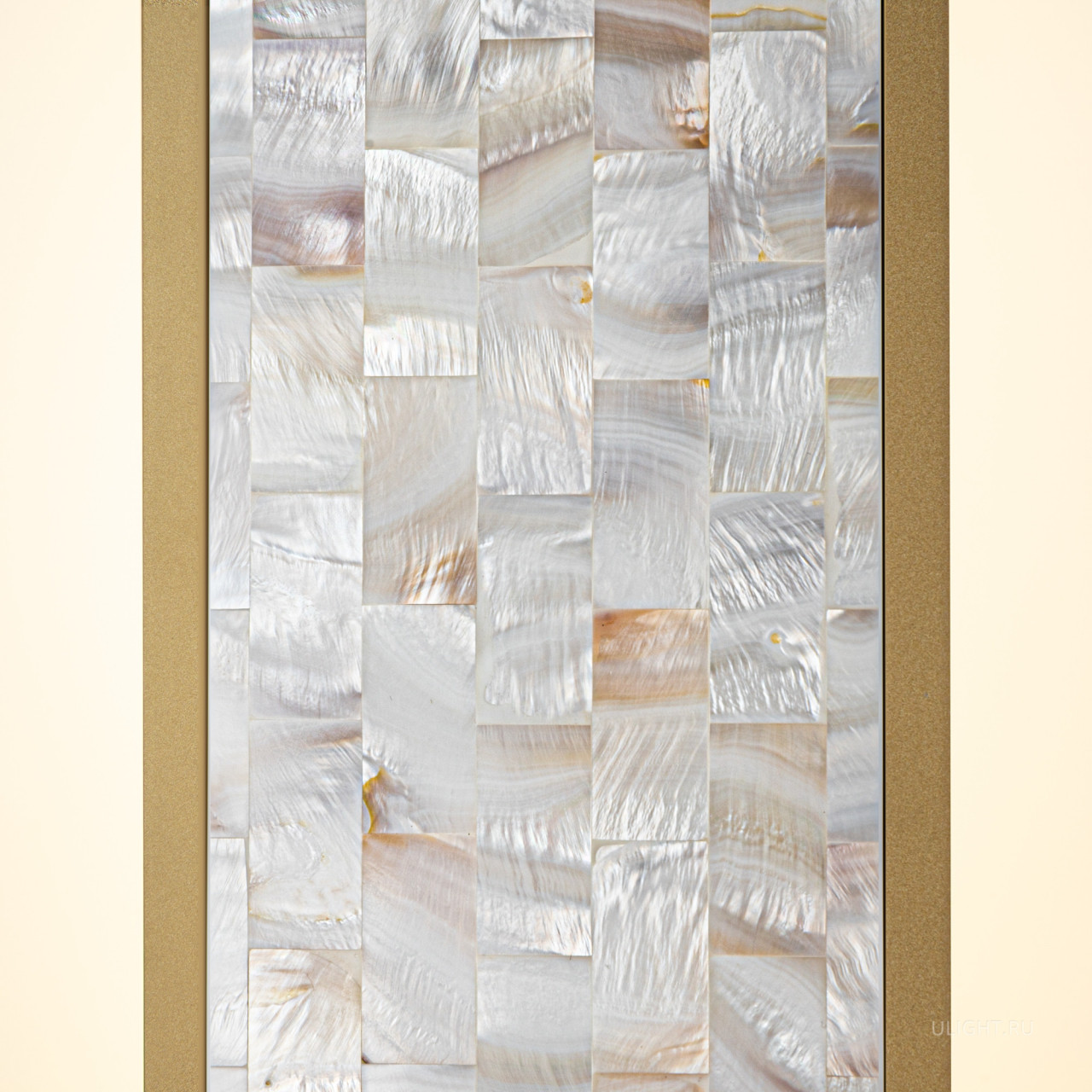 В серии представлены настенные светильники двух размеров и двух поколений. Декоративная мозаика из натурального перламутра играет нежнейшими бликами. Контраст текстур — переливы перламутра и матовая поверхность металла цвета латуни. LED-лента под акриловым рассеивателем создаёт ореол на стене. Предусмотрено трехступенчатое переключение температуры света через вкл-выкл (2700-3000-4000K), позволяющее создавать желаемую атмосферу. Эффектно светильники смотрятся и в комбинации друг с другом.