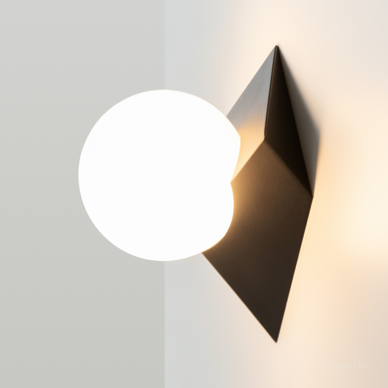 Контрастное сочетание строгих линий металлической конструкции и сферического плафона создает динамичную игру форм. Арматура: металл в трех цветах — черный с антибликовым покрытием, латунь и платина с мерцающим финишем. Плафон: матовый стеклянный шар со сменным источником света (цоколь G9). Основание сложной геометрической формы, скрывающее монтажные элементы. Идеален для гостиных, прихожих, кабинетов и коммерческих пространств. Дизайн сочетает минимализм с художественной выразительностью.