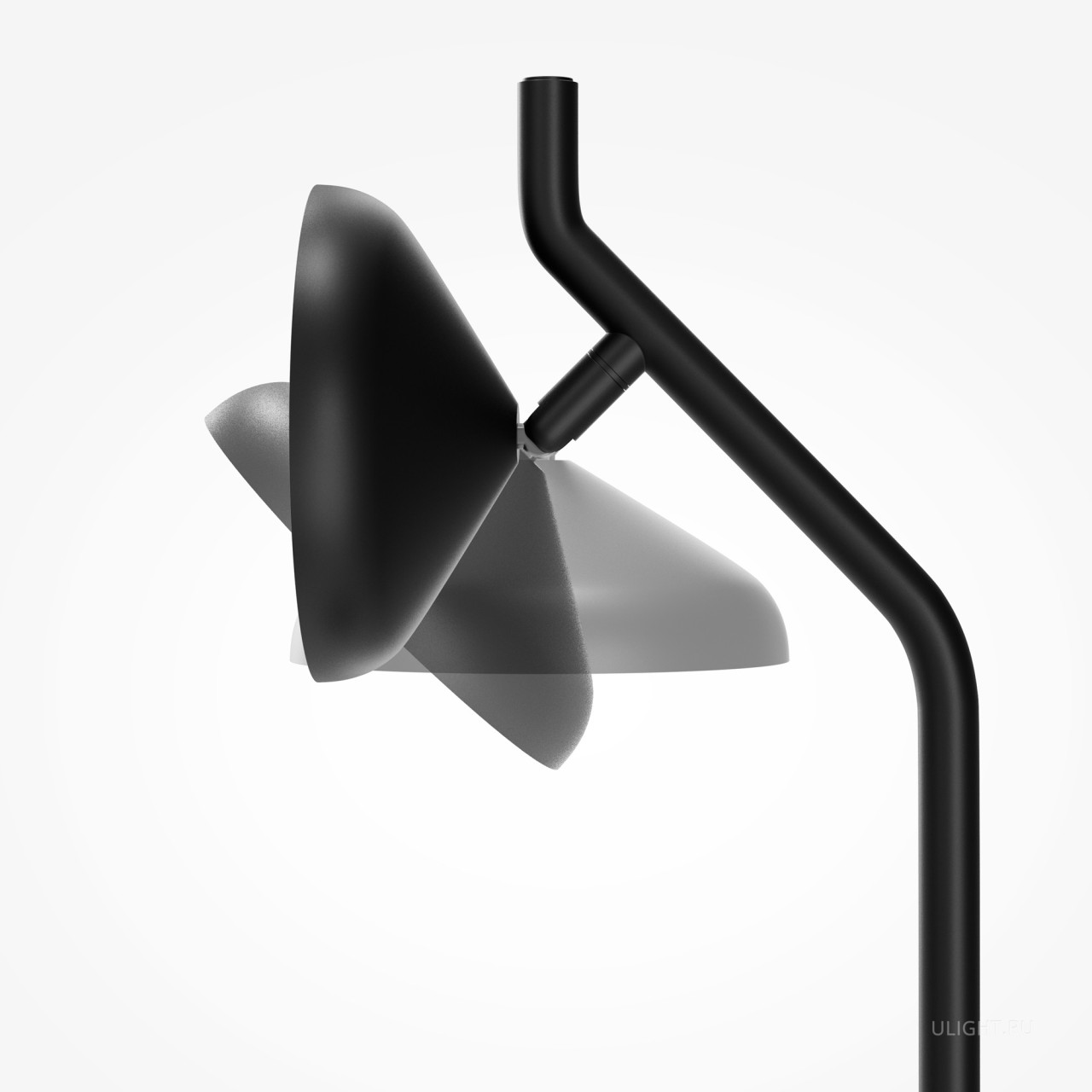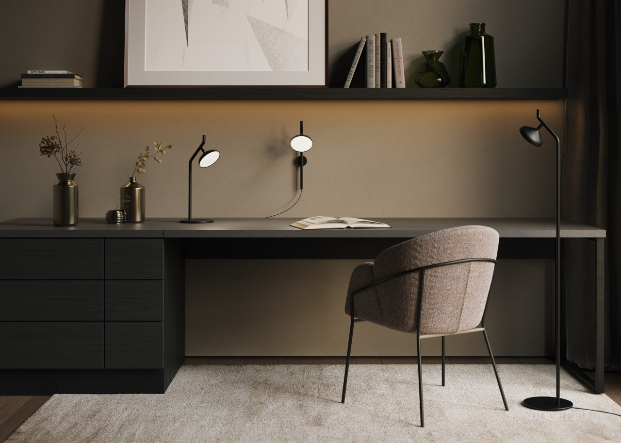 Арматура: металл черный антибликовый. Рассеиватель: матовый акрил. LED-источник 3000K с направленным светом. Серия включает настольный светильник, бра, подвес и торшеры (1-2 плафона). Шарнирные механизмы с регулировкой по вертикали (90°) и горизонтали (180°). Подвесной светильник с лифтовым механизмом регулировки высоты. Выключатель с функцией диммирования на корпусе. Настенная модель с сетевым подключением. Для полного освещения или зонирования пространства. Универсальное решение для современных интерьеров.