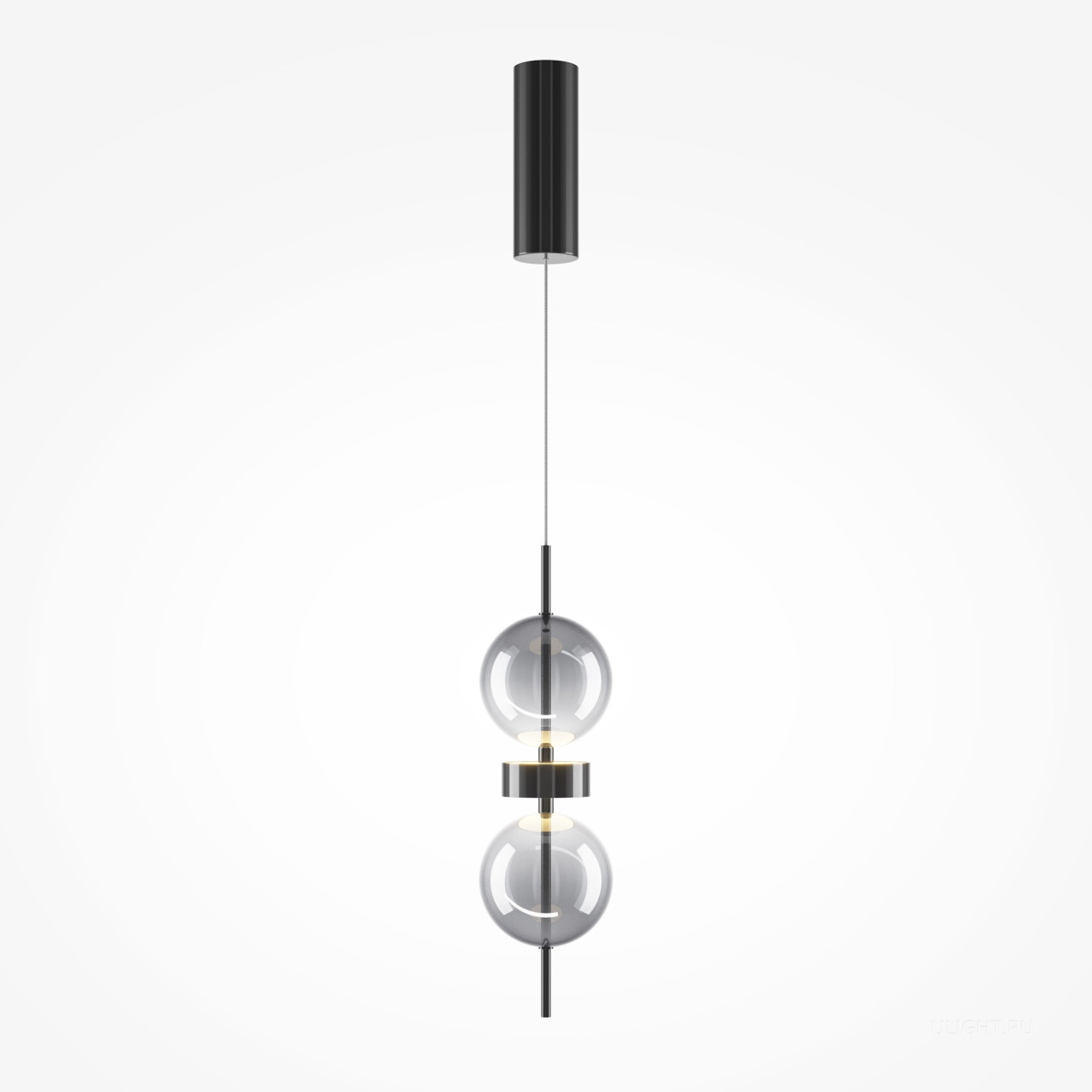 Серия включает подвесной светильник, бра, напольный и портативную модели. Стеклянные плафоны с зеркальным градиентом, черная глянцевая арматура из металла. LED-источник (3000K) скрыт матовым рассеивателем. Конструктивные особенности: магнитные потолочные чаши у подвесов и магнитное основание у бра обеспечивают монтаж без видимого крепежа. Напольный и аккумуляторный светильники диммируются при длительном удержании кнопки. Серия отмечена премиями Red Dot и A’design за инновационный дизайн.
