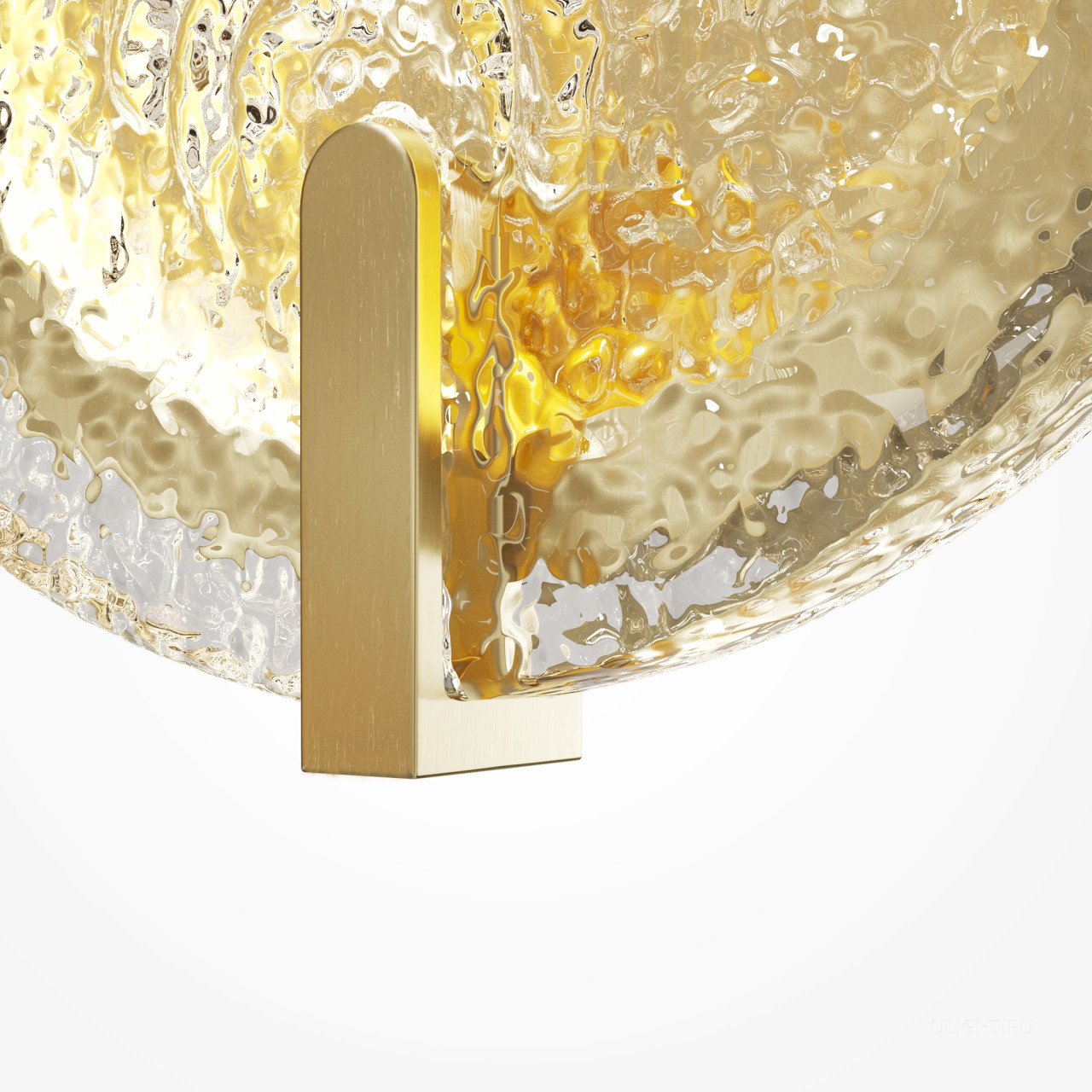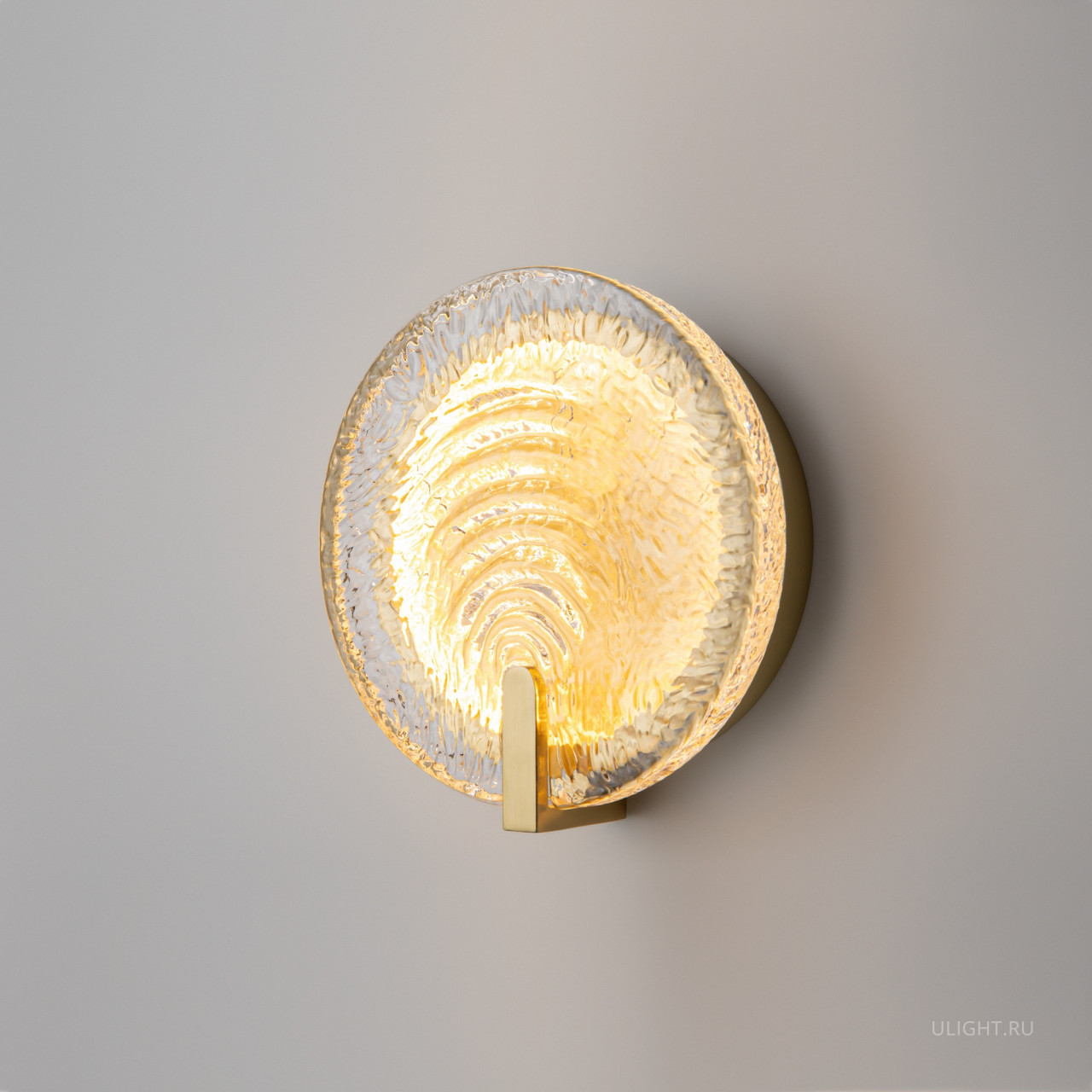Дизайн серии передаёт застывшее движение судна по воде. Металлическая арматура в цвете сатинированной латуни. Рельефное прозрачное литое стекло. В серии модели двух размеров, которые можно устанавливать как вертикально, так и горизонтально для создания композиций. Отступ от стены всего 62 мм. Шестигранники в качестве крепежей обеспечивают лаконичный вид без визуального шума. LED-источник (3000К) скрыт матовым рассеивателем. Бра органично впишутся в прихожие, гостиные, спальни или коридоры.
