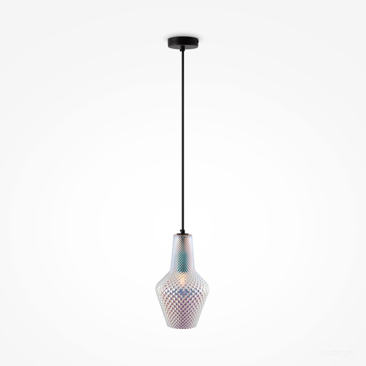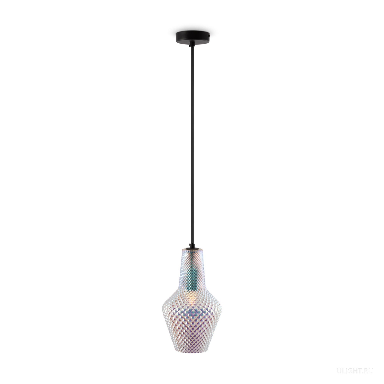 Арматура из металла в черном цвете. Фактурный плафон с рельефным рисунком, материал – выдувное стекло. Высота светильников ре