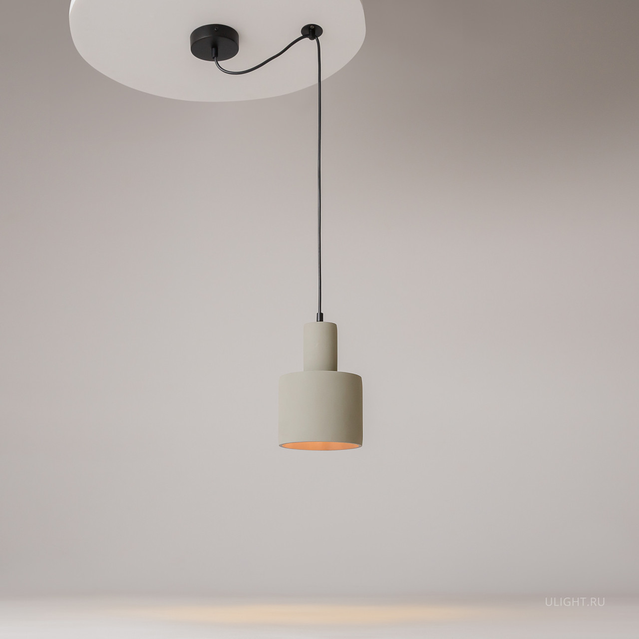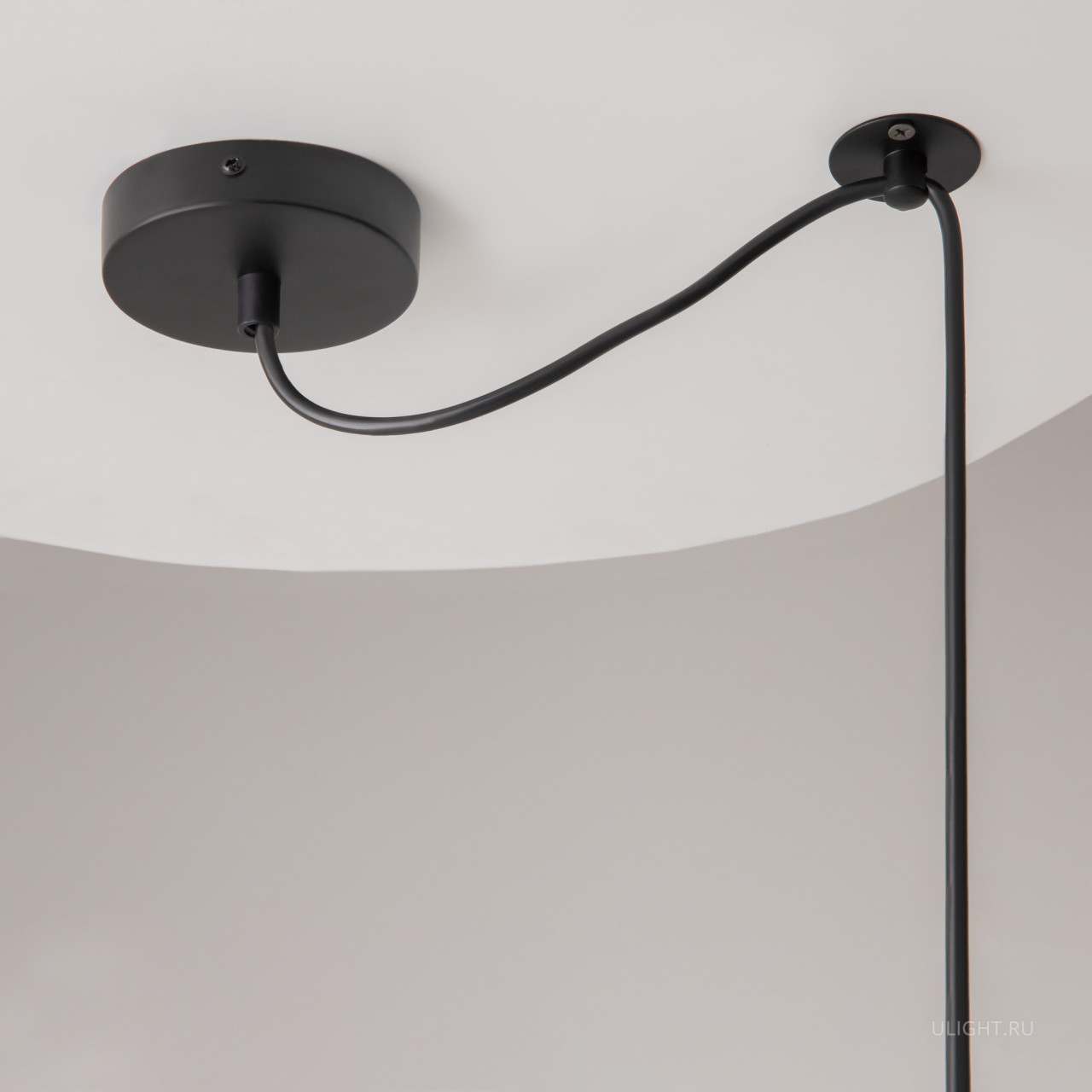 Металлическая арматура в черном цвете. Бетонный плафон серого оттенка. Дополнительное потолочное крепление. Высота регулируется ш
